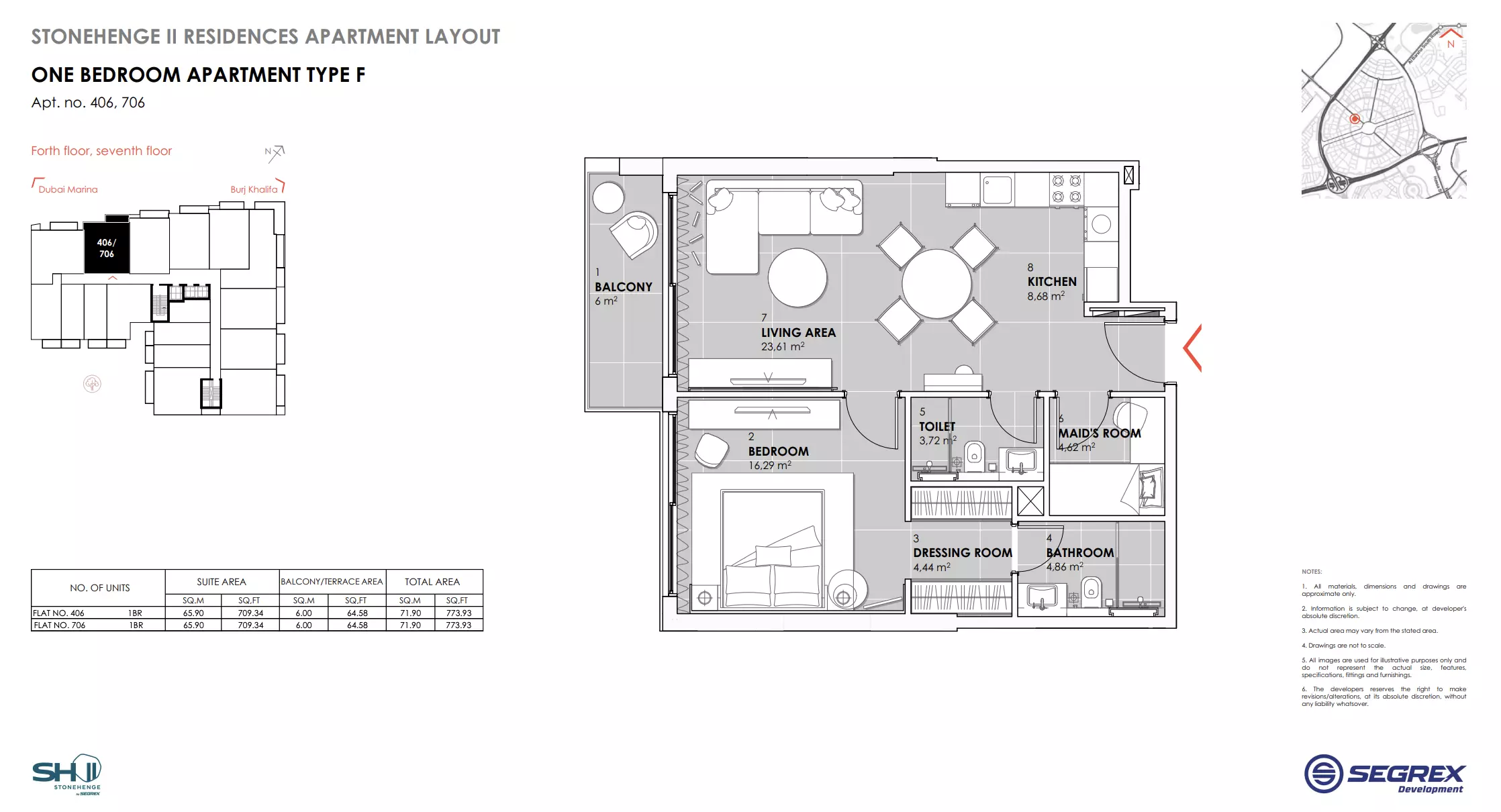| Type F - Apt. no. 406, 706 | 773.00 | View |