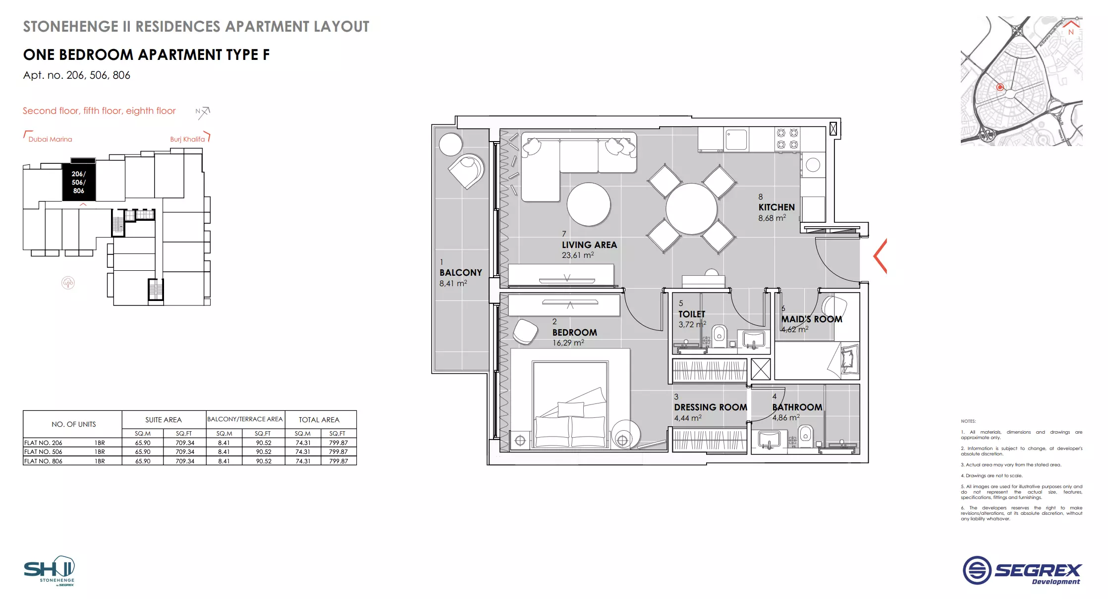 | Type F - Apt. no. 206, 506, 806 | 799.00 | View |