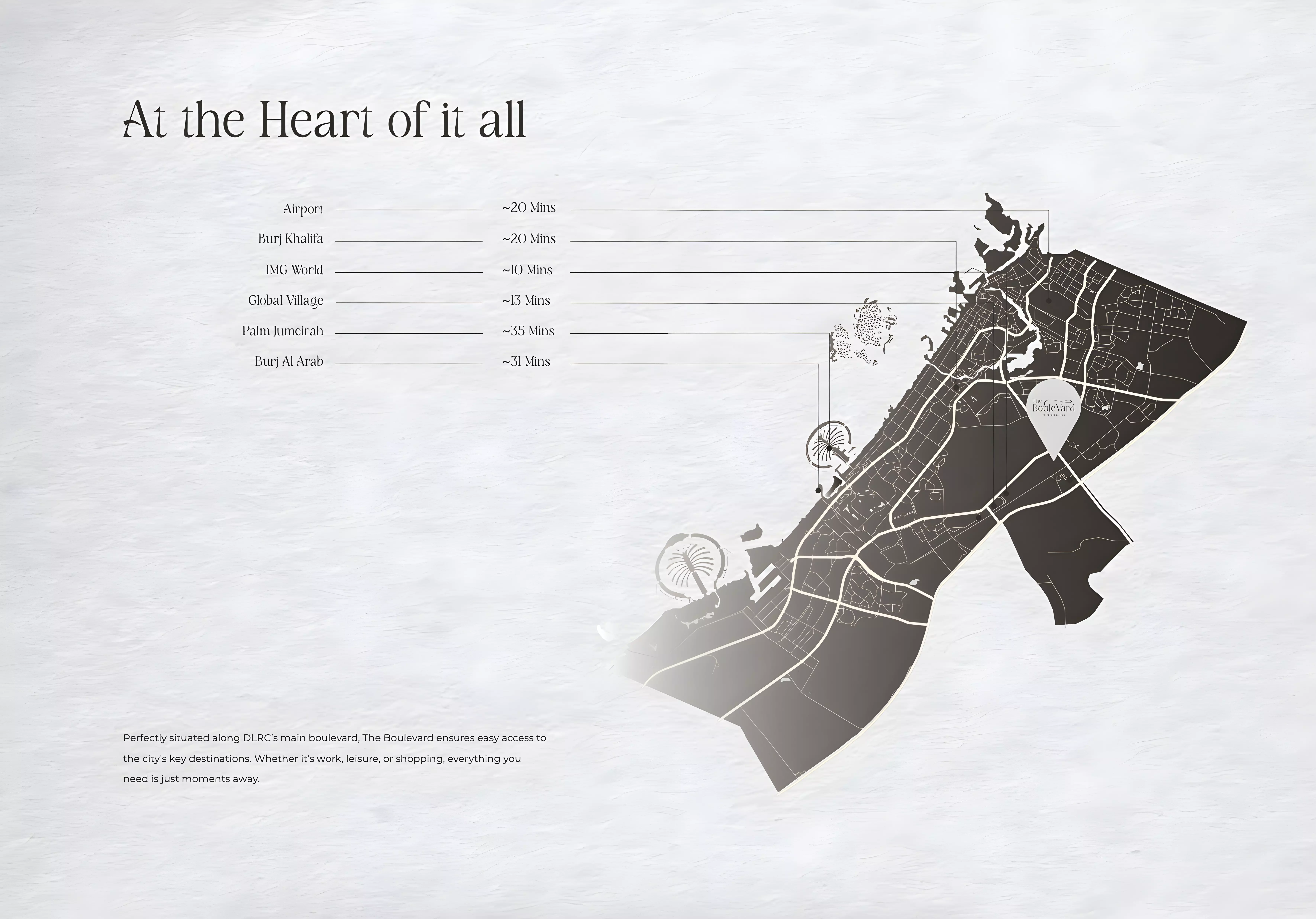 The Boulevard is located in Dubai, Dubai Land Residence Complex, offering a central and accessible position within the city.