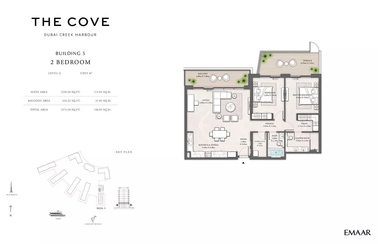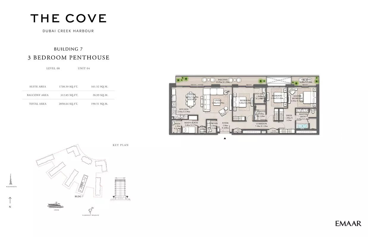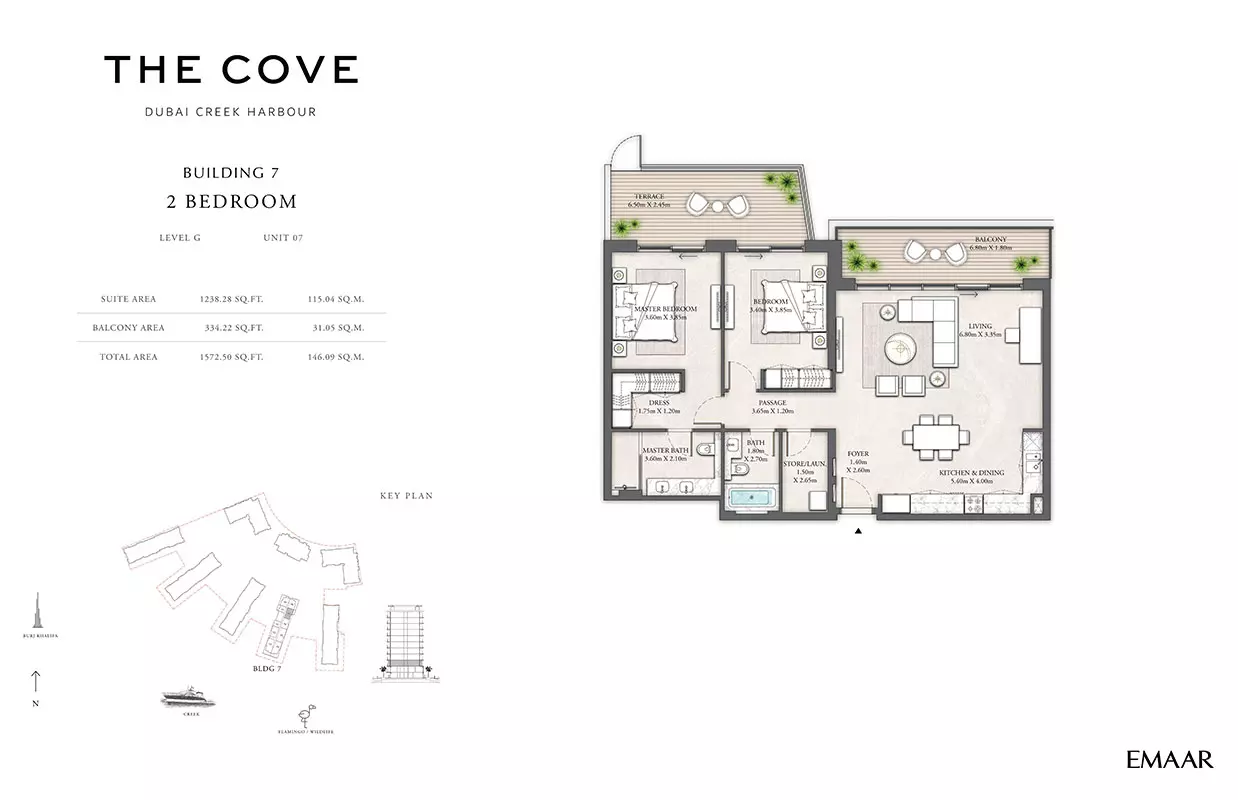 Emaar Properties, a globally renowned developer, is behind The Cove 2. Emaar is known for delivering exceptional residential and commercial properties across Dubai.