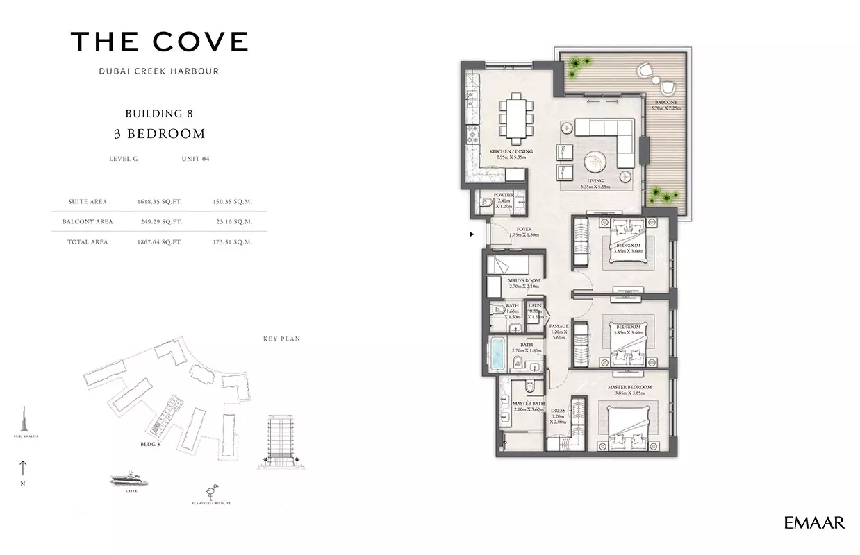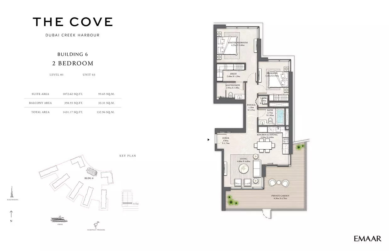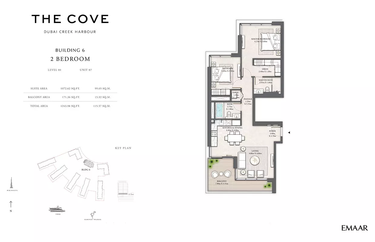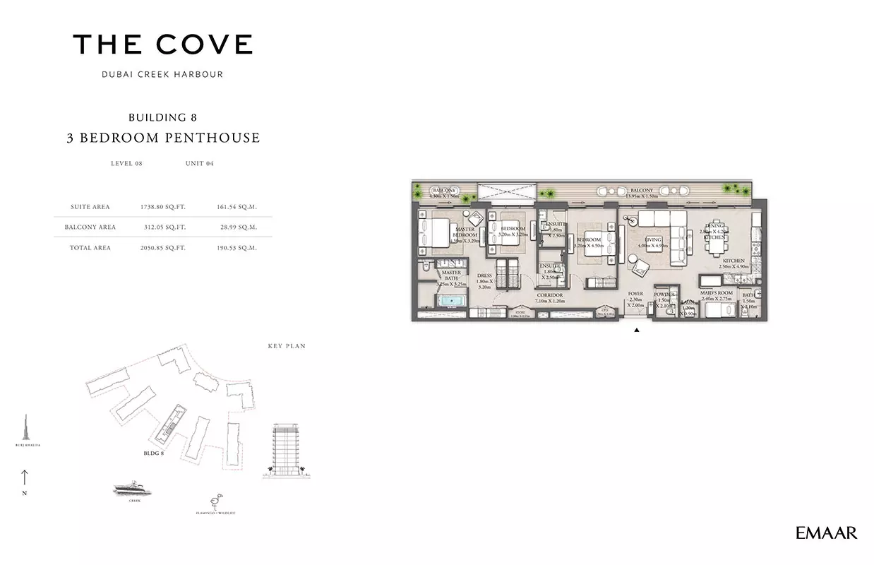 Emaar Properties, a globally renowned developer, is behind The Cove 2. Emaar is known for delivering exceptional residential and commercial properties across Dubai.