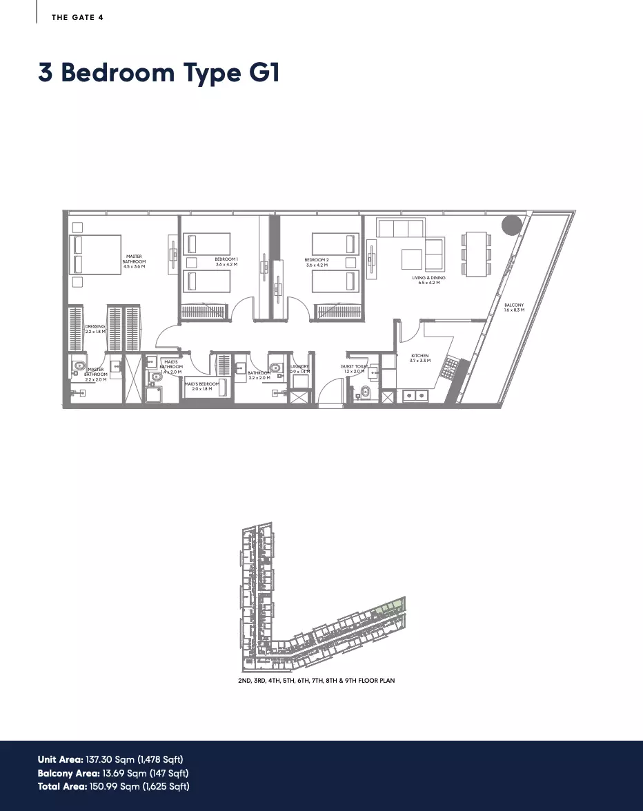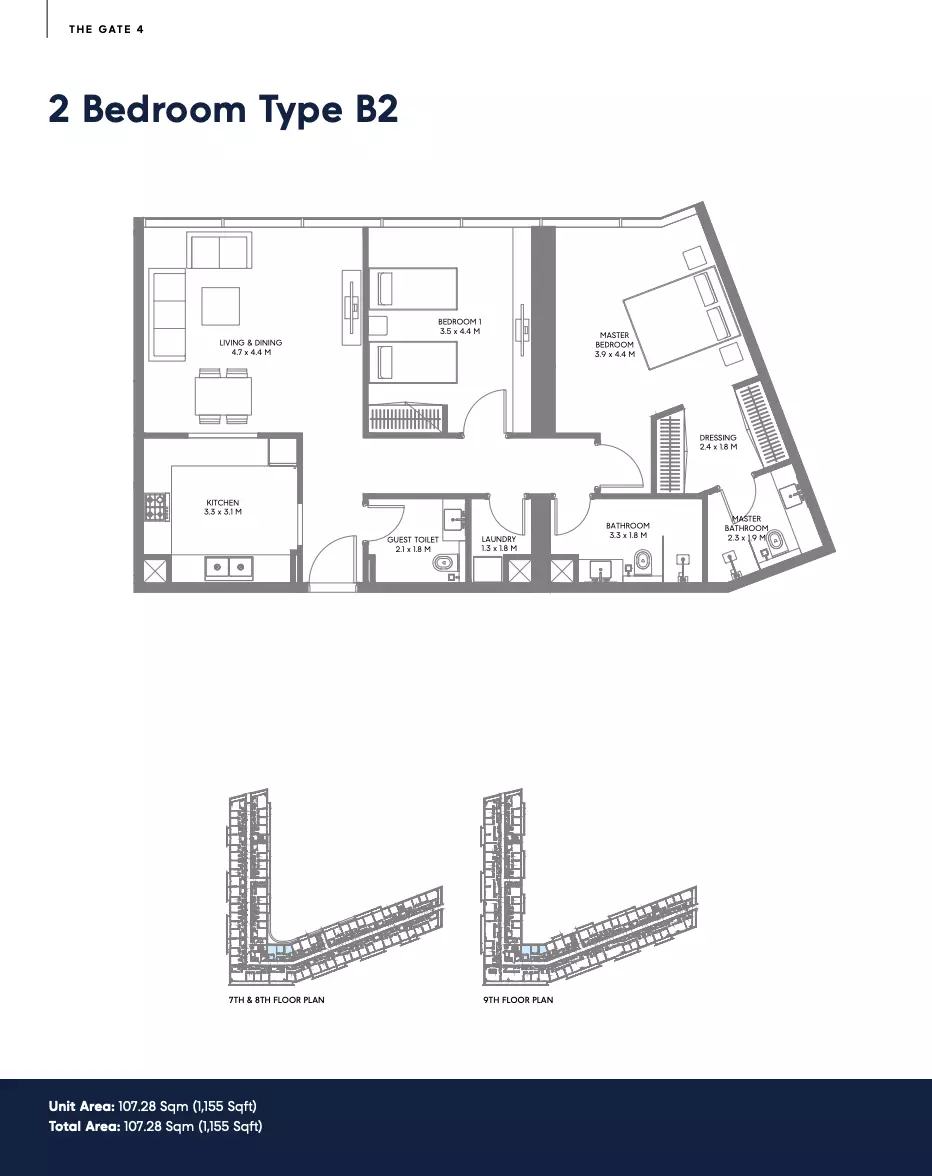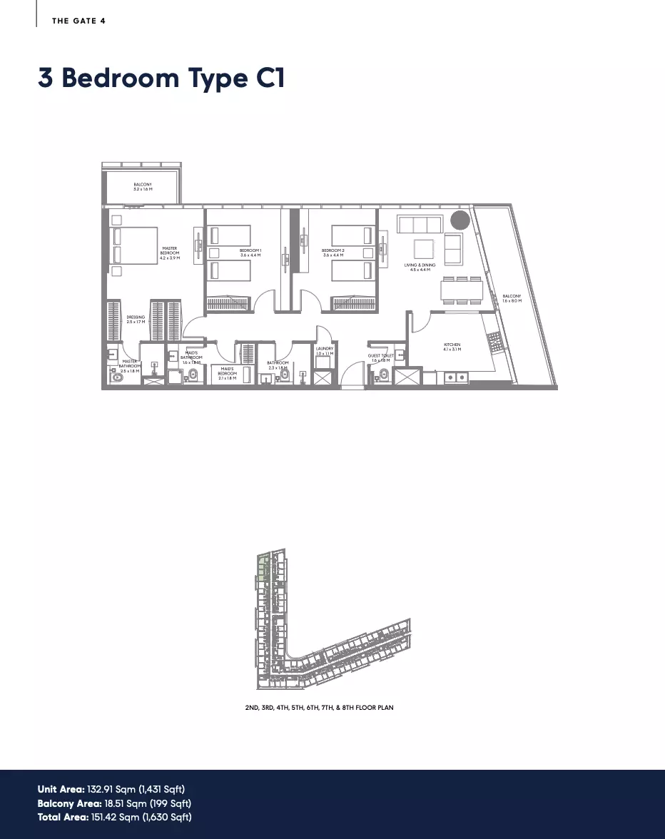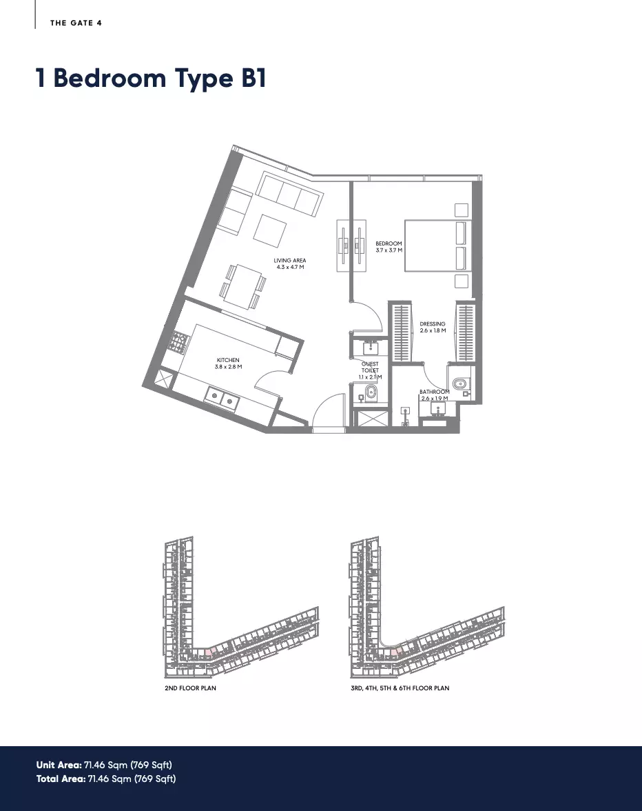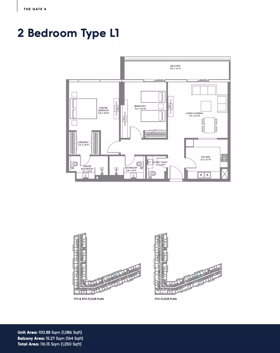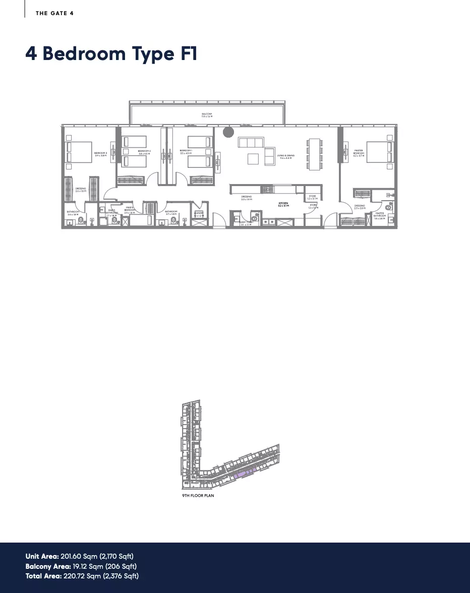 The Gate Phase 4 by Arada offers a range of apartment options catering to different lifestyle needs. One-bedroom units start from AED 985,000, with sizes ranging from 726 to 891 square feet, providing efficient layouts for singles or couples. Two-bedroom apartments are priced from AED 1.5 million, offering between 1,076 and 2,307 square feet, ideal for small families or those seeking extra space. Three-bedroom units start from AED 2 million, with sizes from 1,625 to 2,865 square feet, delivering generous living areas. Four-bedroom residences are available from AED 3.1 million, sized between 2,376 and 3,187 square feet, offering expansive layouts for larger households.