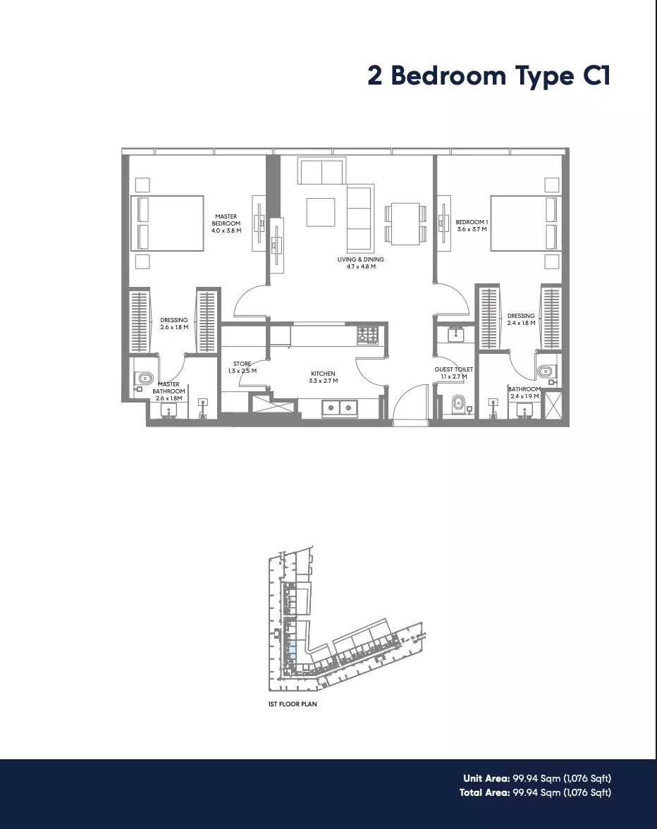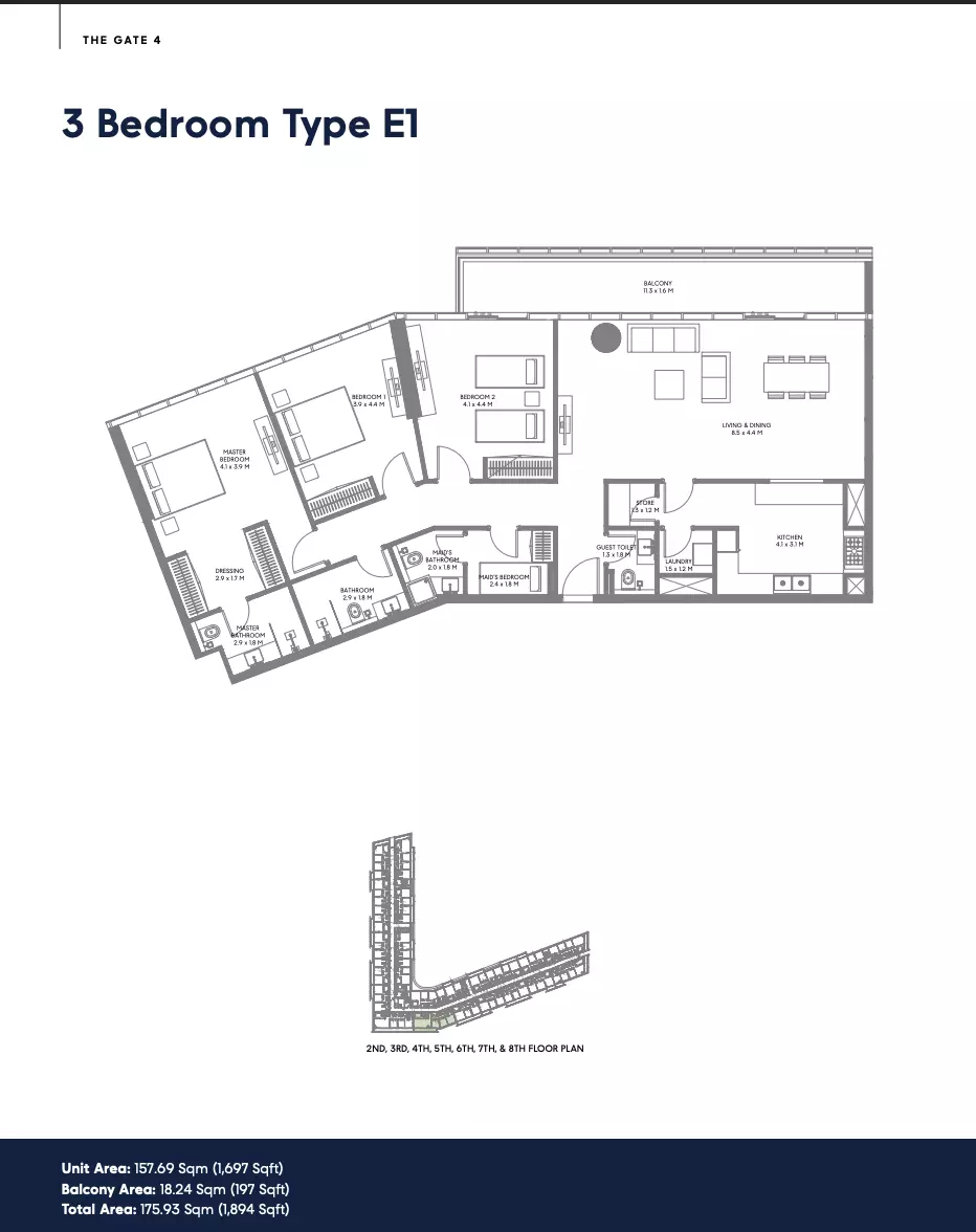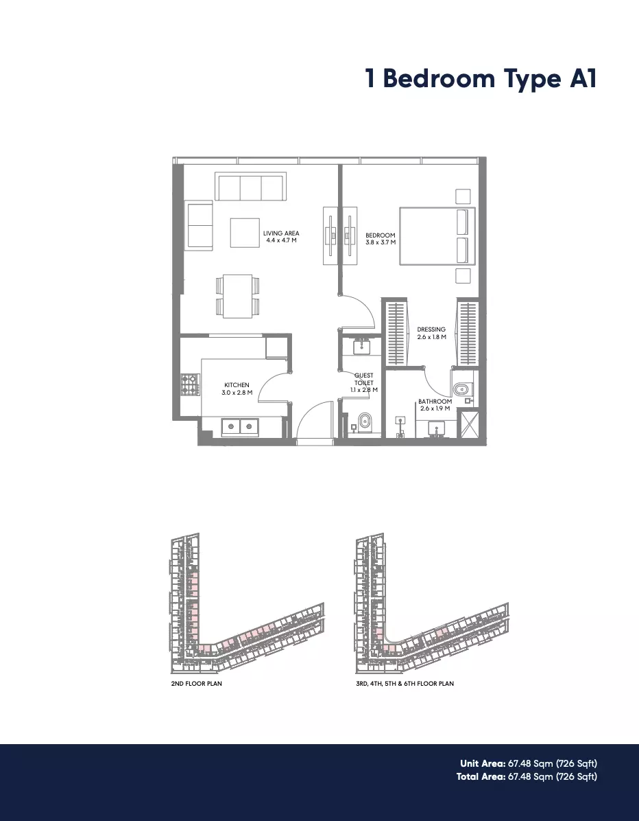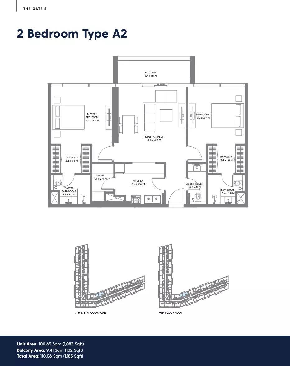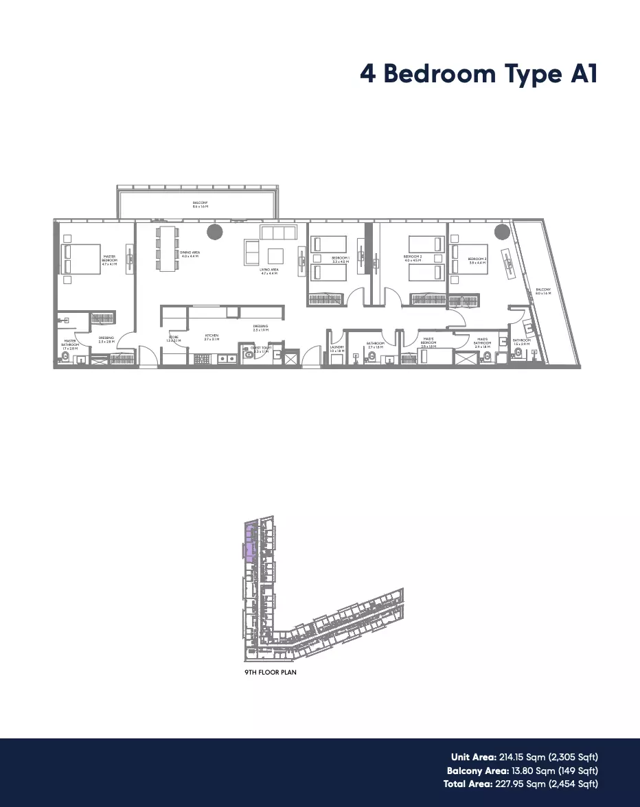 The Gate Phase 4 by Arada offers a range of apartment options catering to different lifestyle needs. One-bedroom units start from AED 985,000, with sizes ranging from 726 to 891 square feet, providing efficient layouts for singles or couples. Two-bedroom apartments are priced from AED 1.5 million, offering between 1,076 and 2,307 square feet, ideal for small families or those seeking extra space. Three-bedroom units start from AED 2 million, with sizes from 1,625 to 2,865 square feet, delivering generous living areas. Four-bedroom residences are available from AED 3.1 million, sized between 2,376 and 3,187 square feet, offering expansive layouts for larger households.