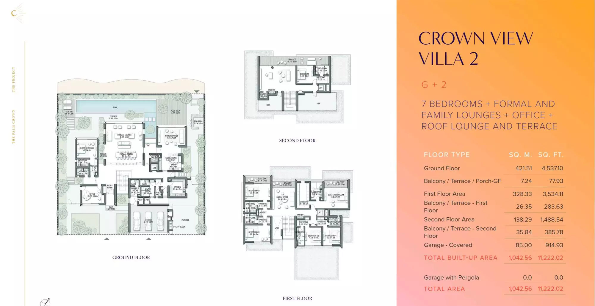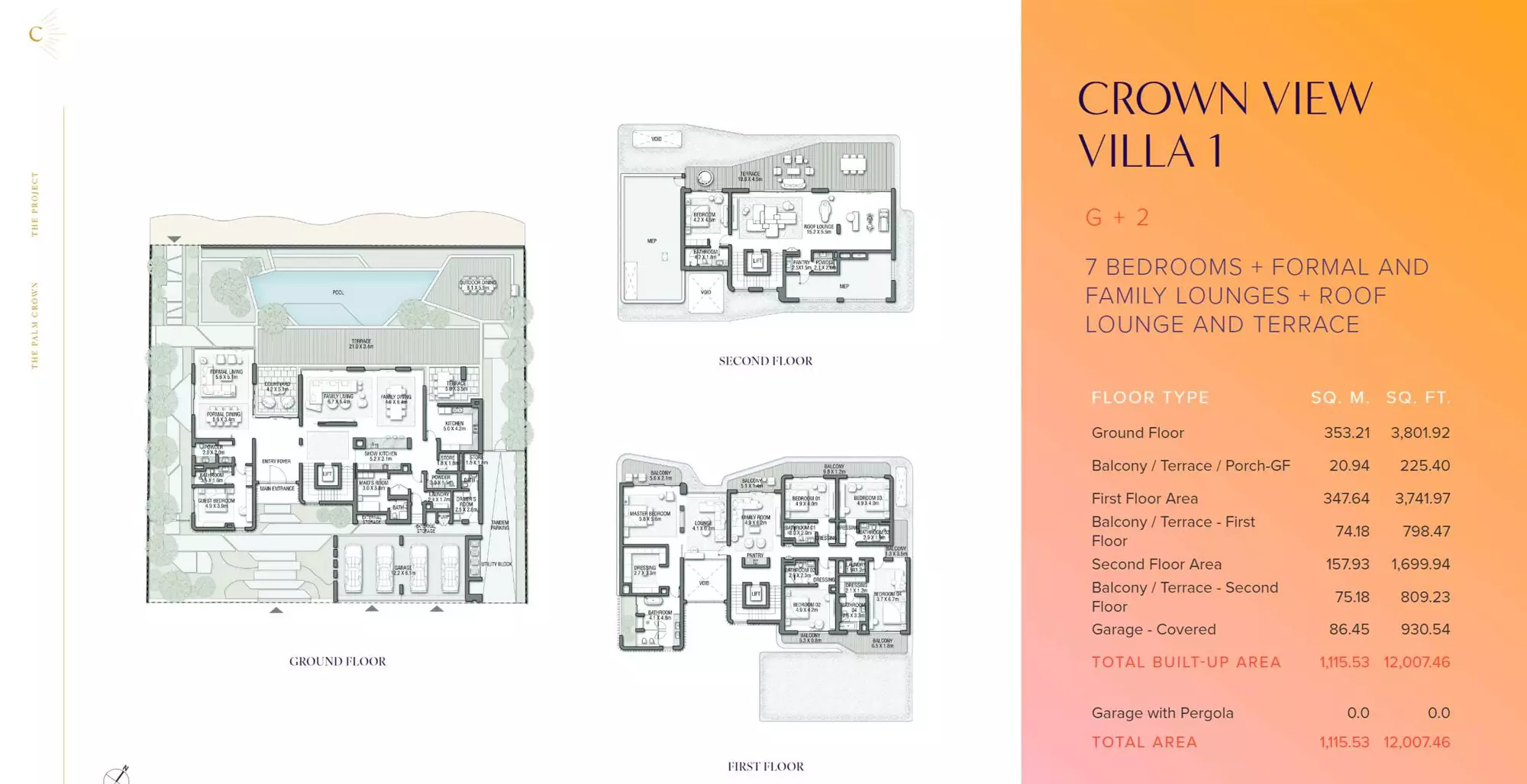 The Palm Crown offers a variety of housing options, ensuring there is something for everyone. The development features luxurious 7 bedroom villas, each designed to provide the highest level of comfort and elegance.