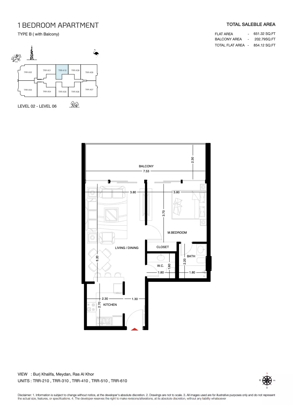| Type B1 ( With Balcony) | 854.00 | View |