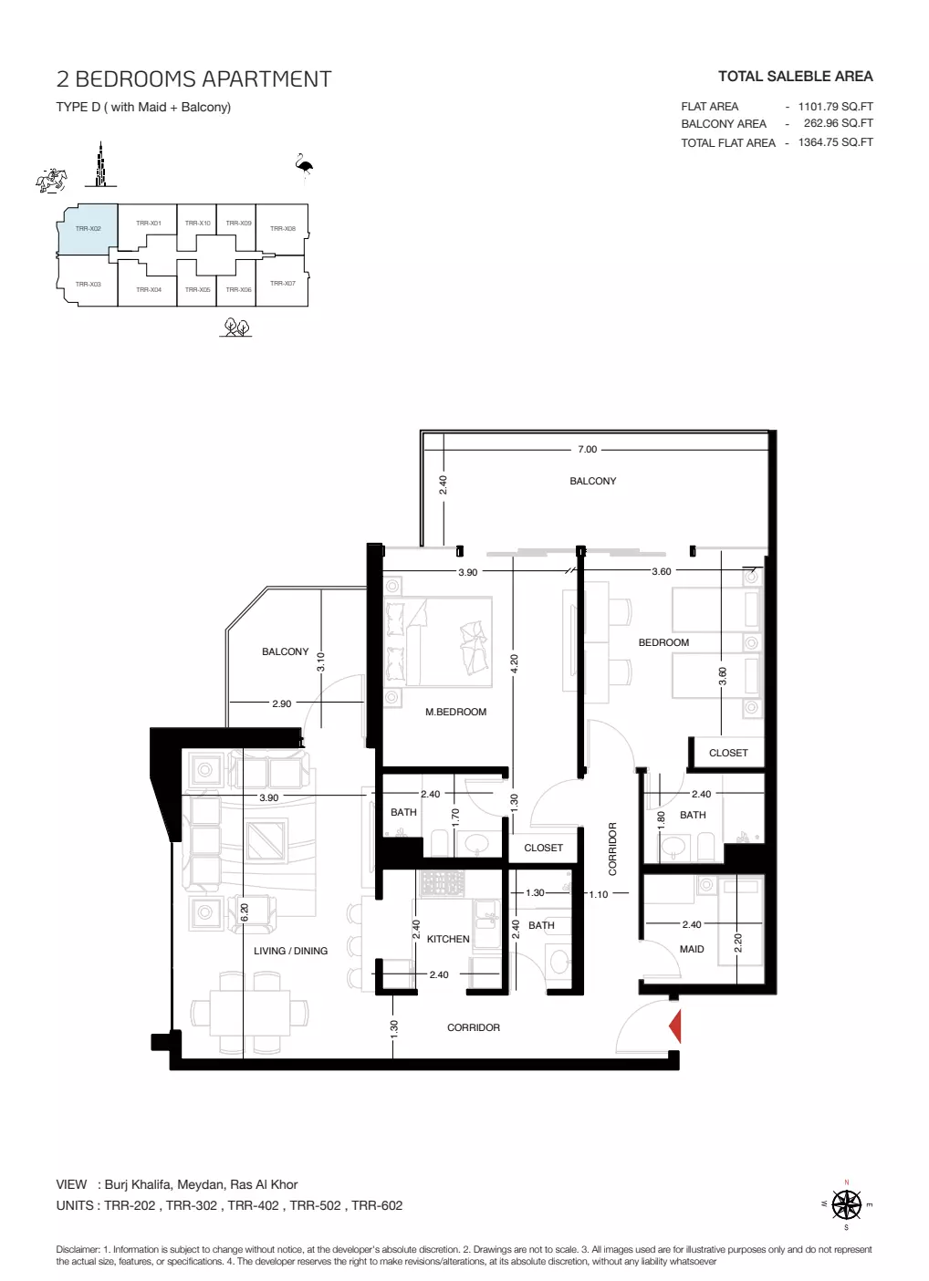 | Type E2 ( with Maid + Balcony) | 1,342.00 | View |