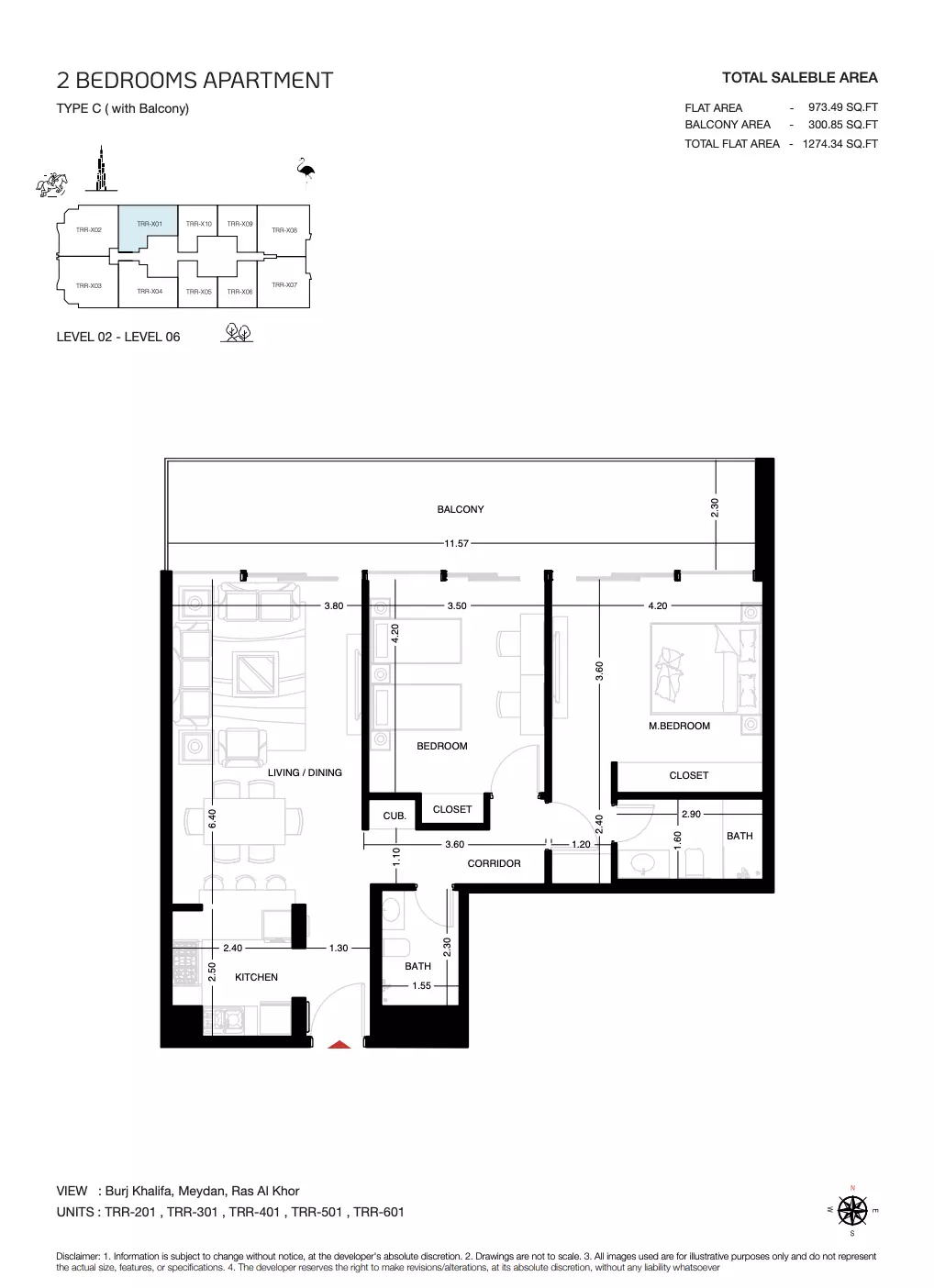 | Type C1 ( with Balcony) | 1,274.00 | View |