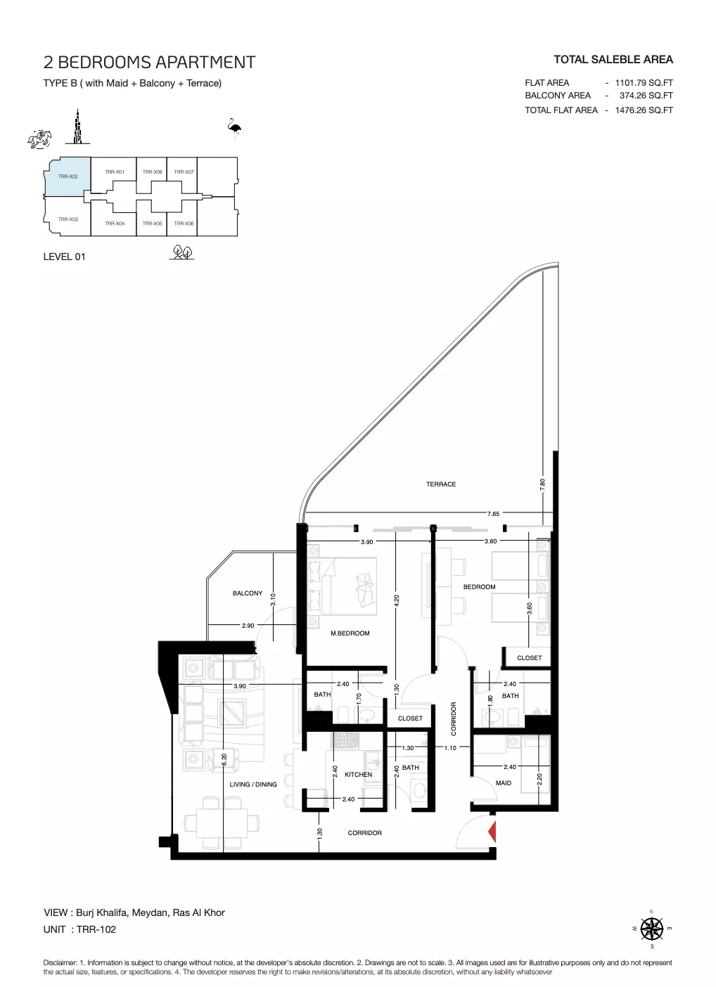 | Type B2 ( With Maid + Balcony + Terrace) | 1,476.00 | View |
