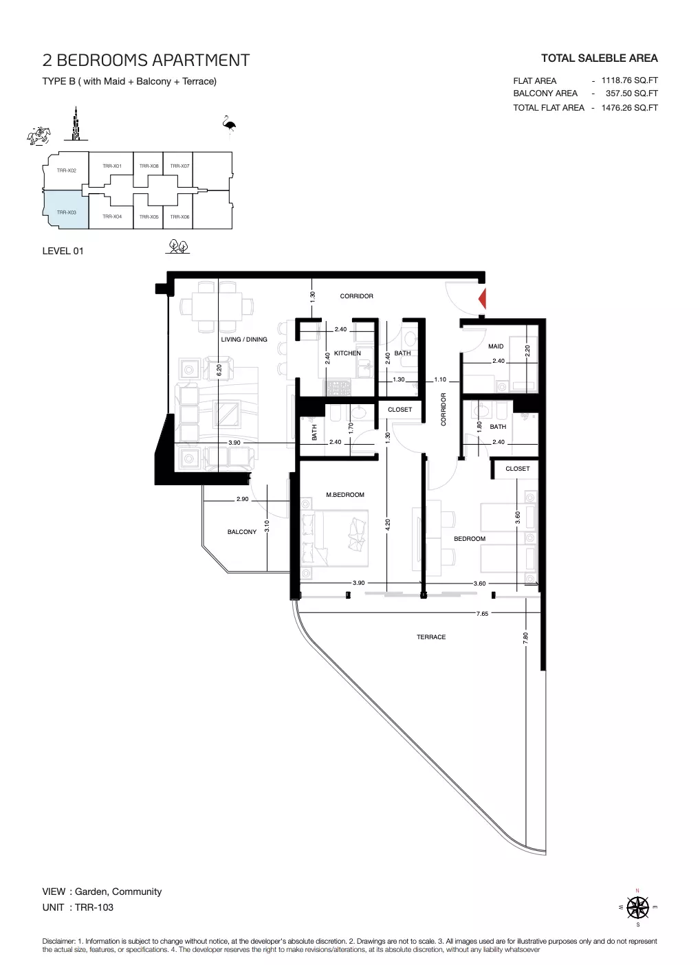 | Type B1 ( With Maid + Balcony + Terrace) | 1,476.00 | View |