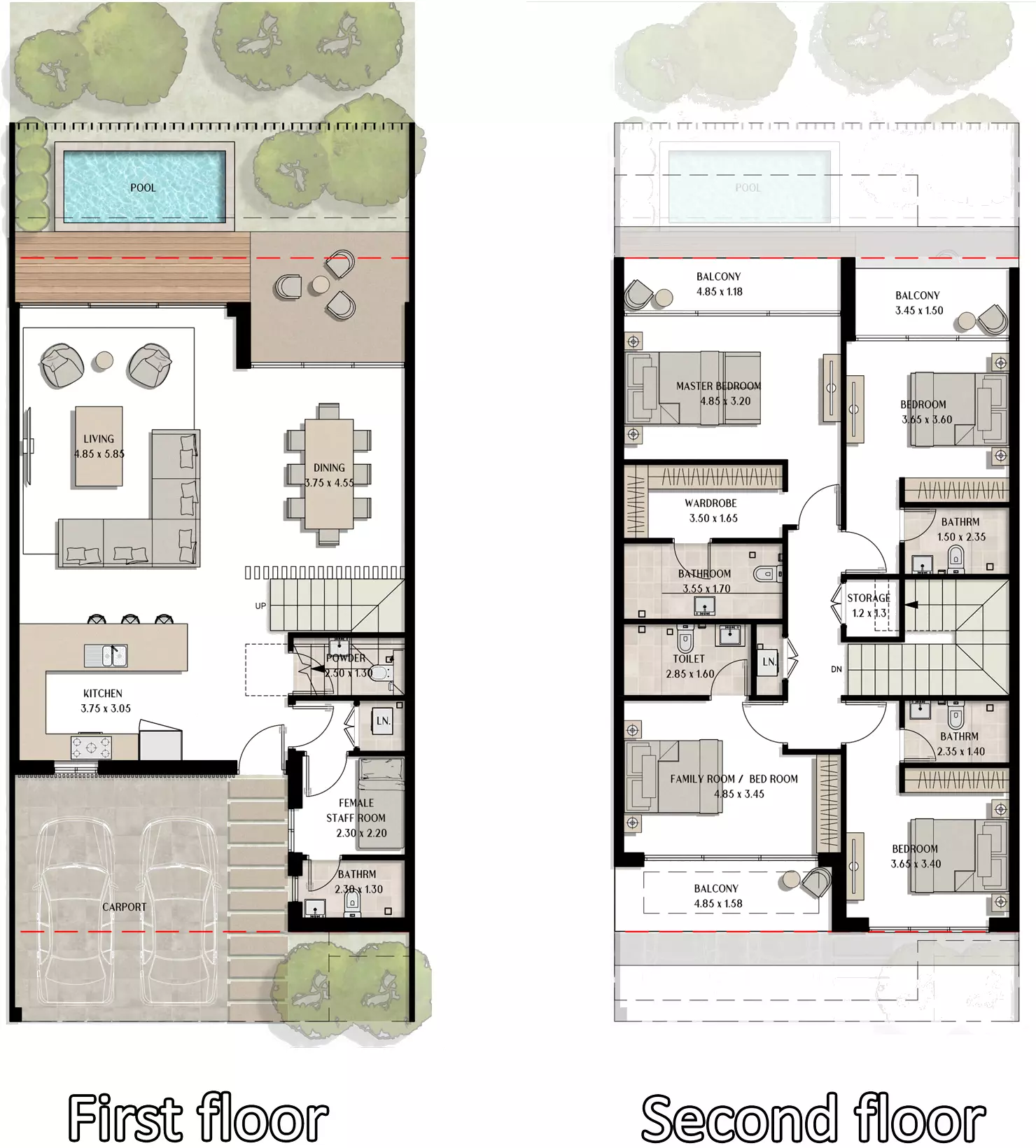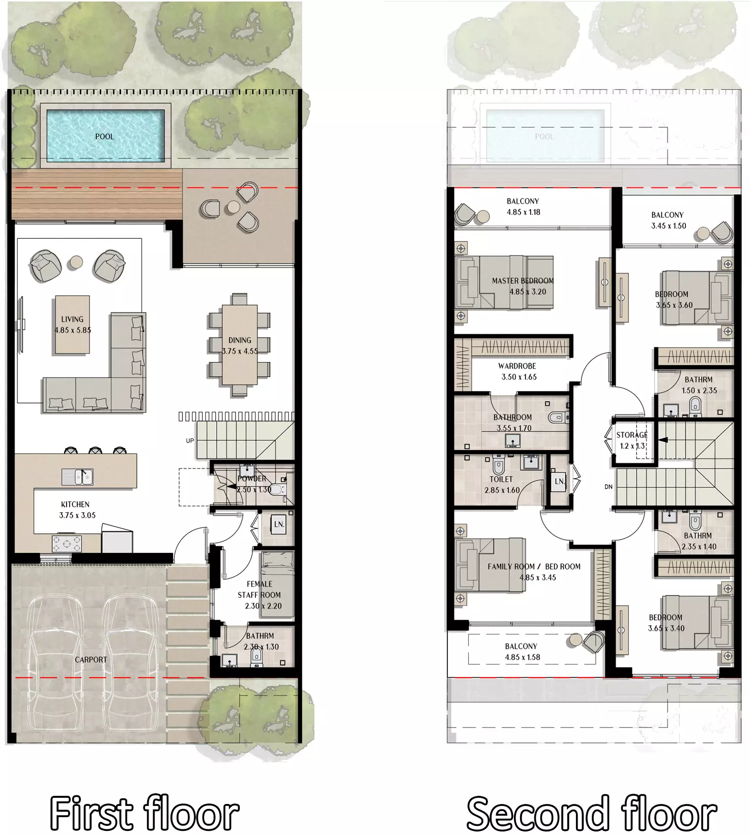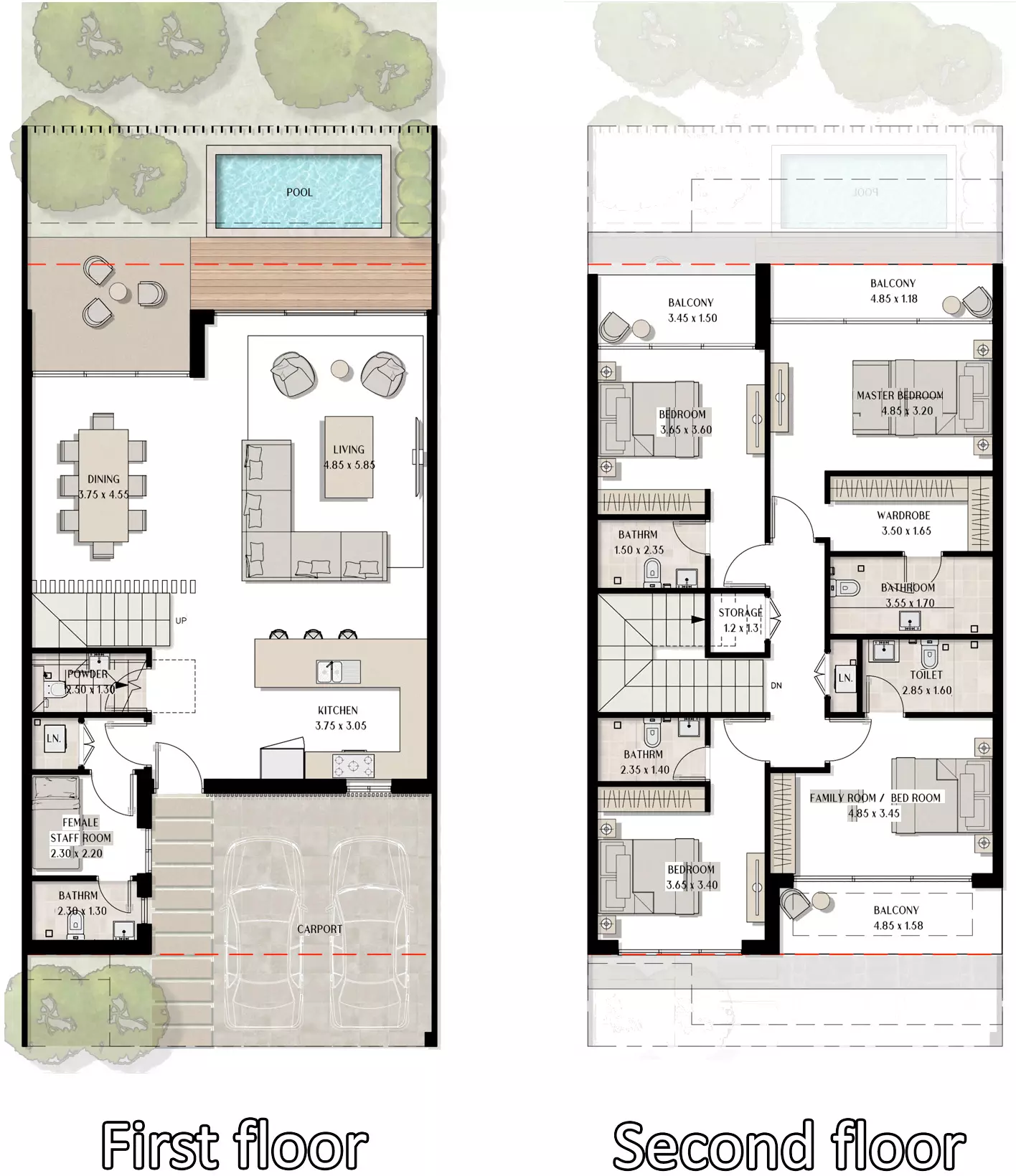 The View Island offers premium residential options, including spacious townhouses and luxury villas. The townhouses come with 4 bedrooms, priced from AED 2.4 million. These units range between 3,315 and 3,885 square feet, providing ample living space suitable for families seeking comfort and privacy in a vibrant community. For buyers looking for larger homes, 5-bedroom villas are available from AED 5.3 million, with each villa offering approximately 5,415 square feet of space. These villas provide an exclusive lifestyle with generous indoor and outdoor areas, ideal for families wanting both luxury and tranquility. The variety of housing options caters to different preferences while maintaining a high standard of living.