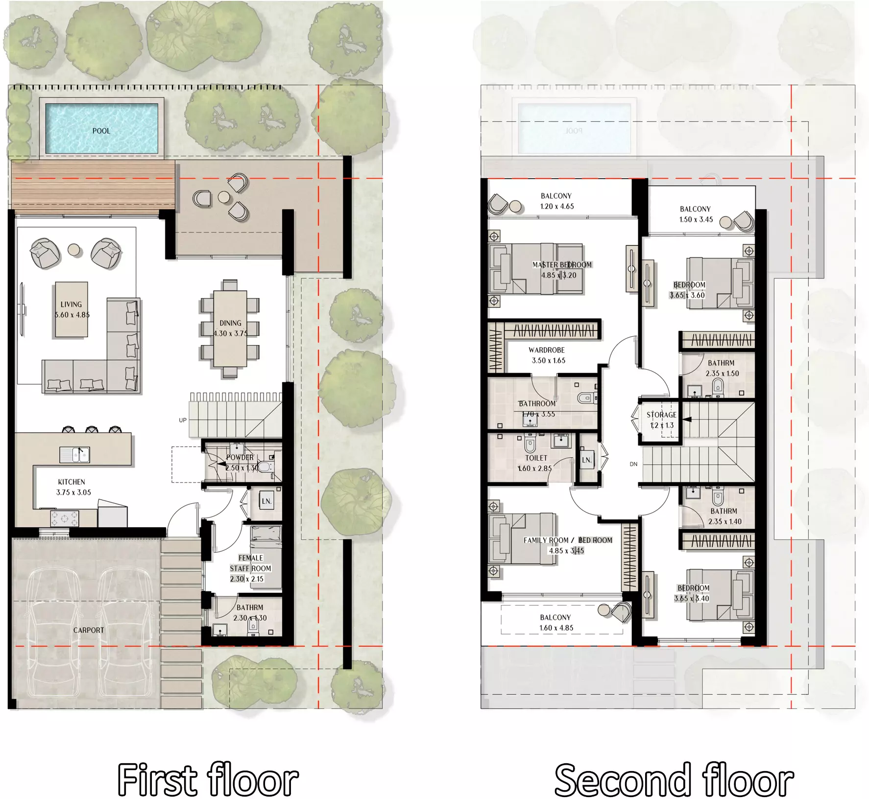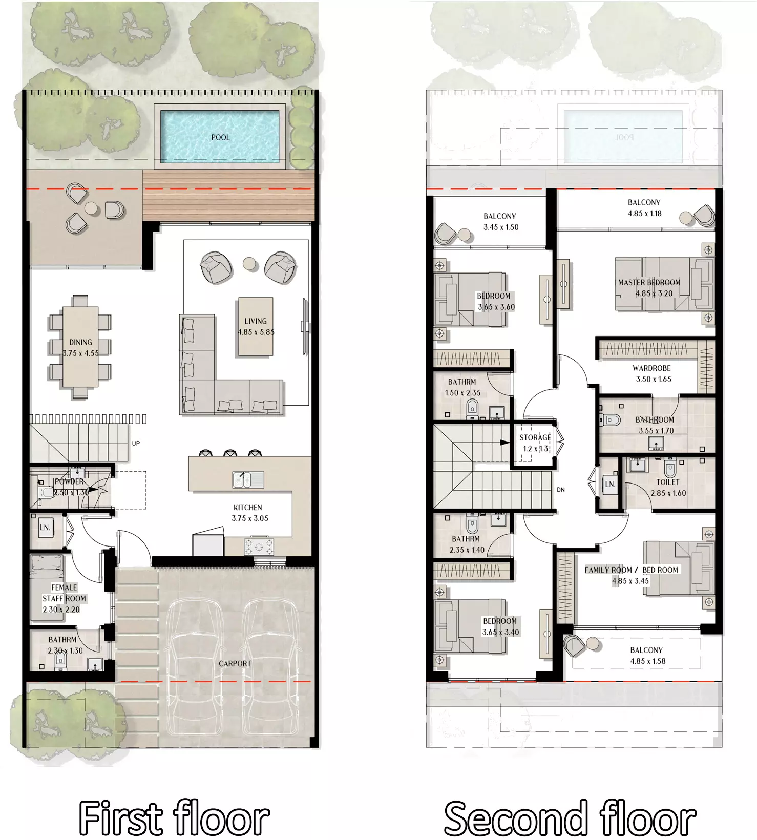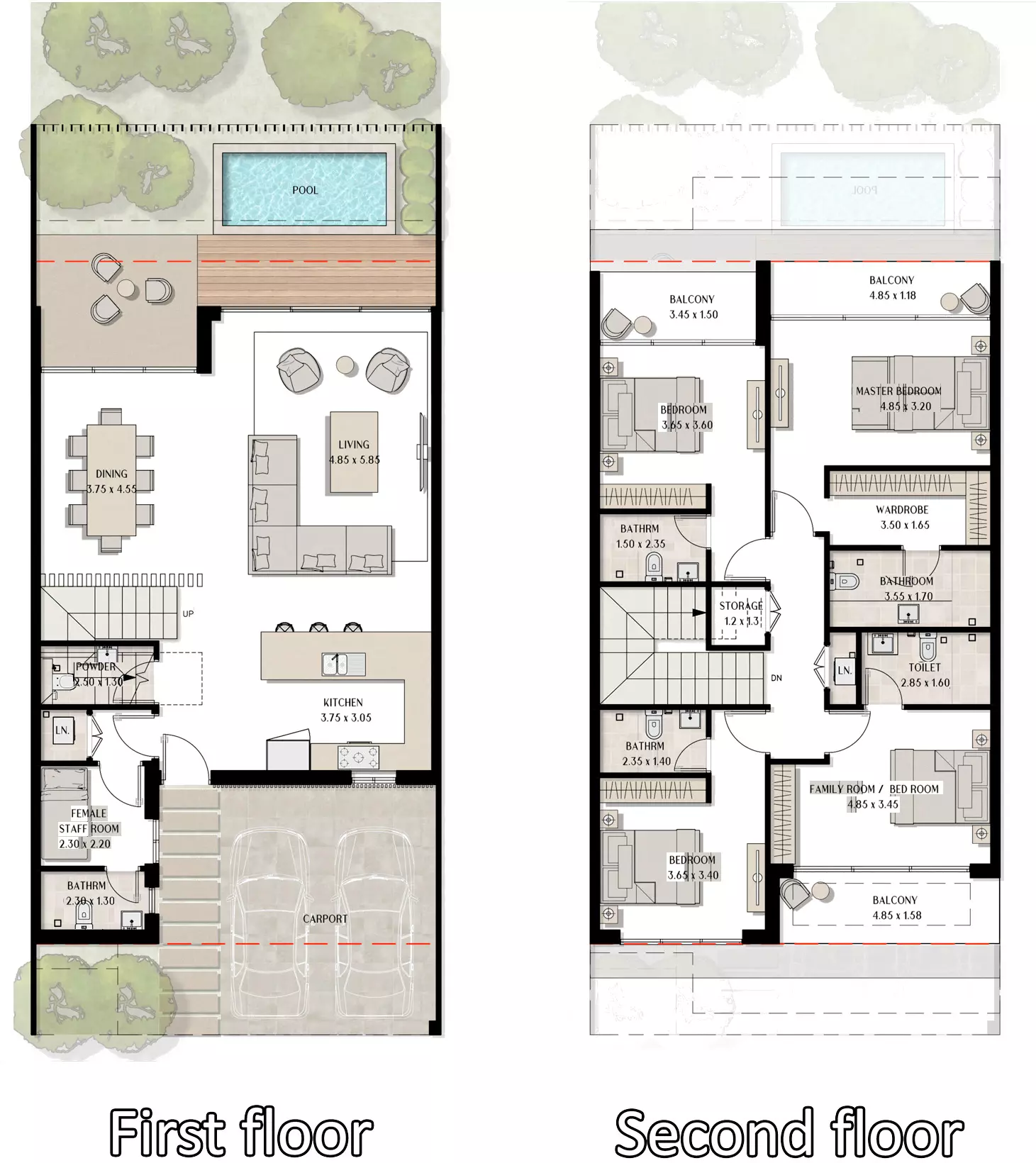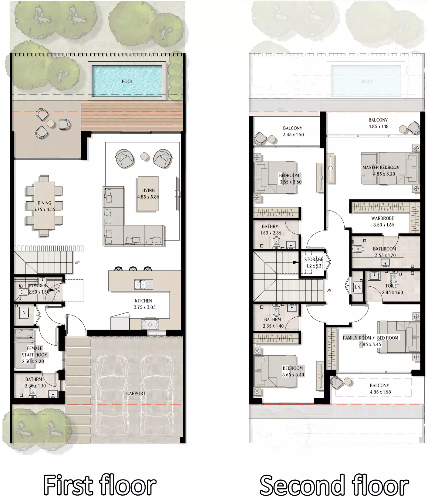 The View Island offers premium residential options, including spacious townhouses and luxury villas. The townhouses come with 4 bedrooms, priced from AED 2.4 million. These units range between 3,315 and 3,885 square feet, providing ample living space suitable for families seeking comfort and privacy in a vibrant community. For buyers looking for larger homes, 5-bedroom villas are available from AED 5.3 million, with each villa offering approximately 5,415 square feet of space. These villas provide an exclusive lifestyle with generous indoor and outdoor areas, ideal for families wanting both luxury and tranquility. The variety of housing options caters to different preferences while maintaining a high standard of living.