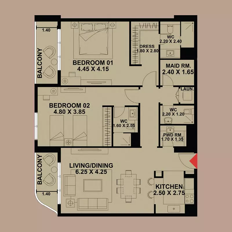 2 Bedrooms