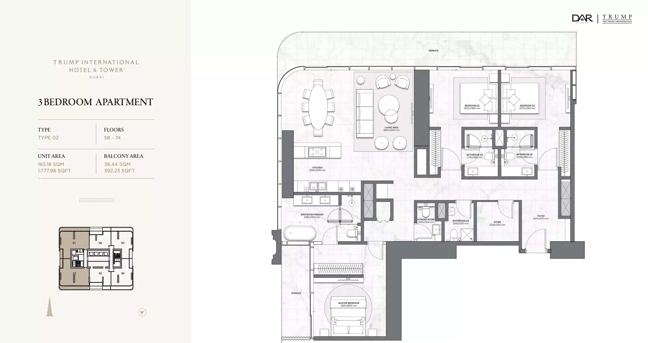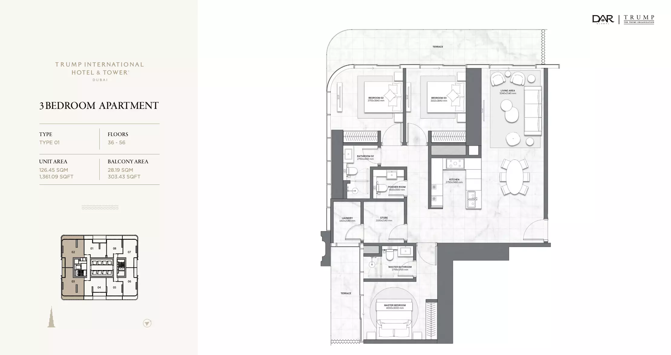 Trump International Hotel & Tower Dubai is owned by Dar Global, a leading international real estate developer known for creating high-end residential and commercial properties. Dar Global specializes in delivering premium projects in some of the world’s most prestigious locations, ensuring exceptional quality and design standards. Their ownership of Trump International Hotel & Tower Dubai reflects their commitment to luxury, innovation, and excellence in the real estate market.