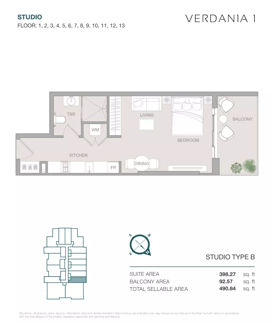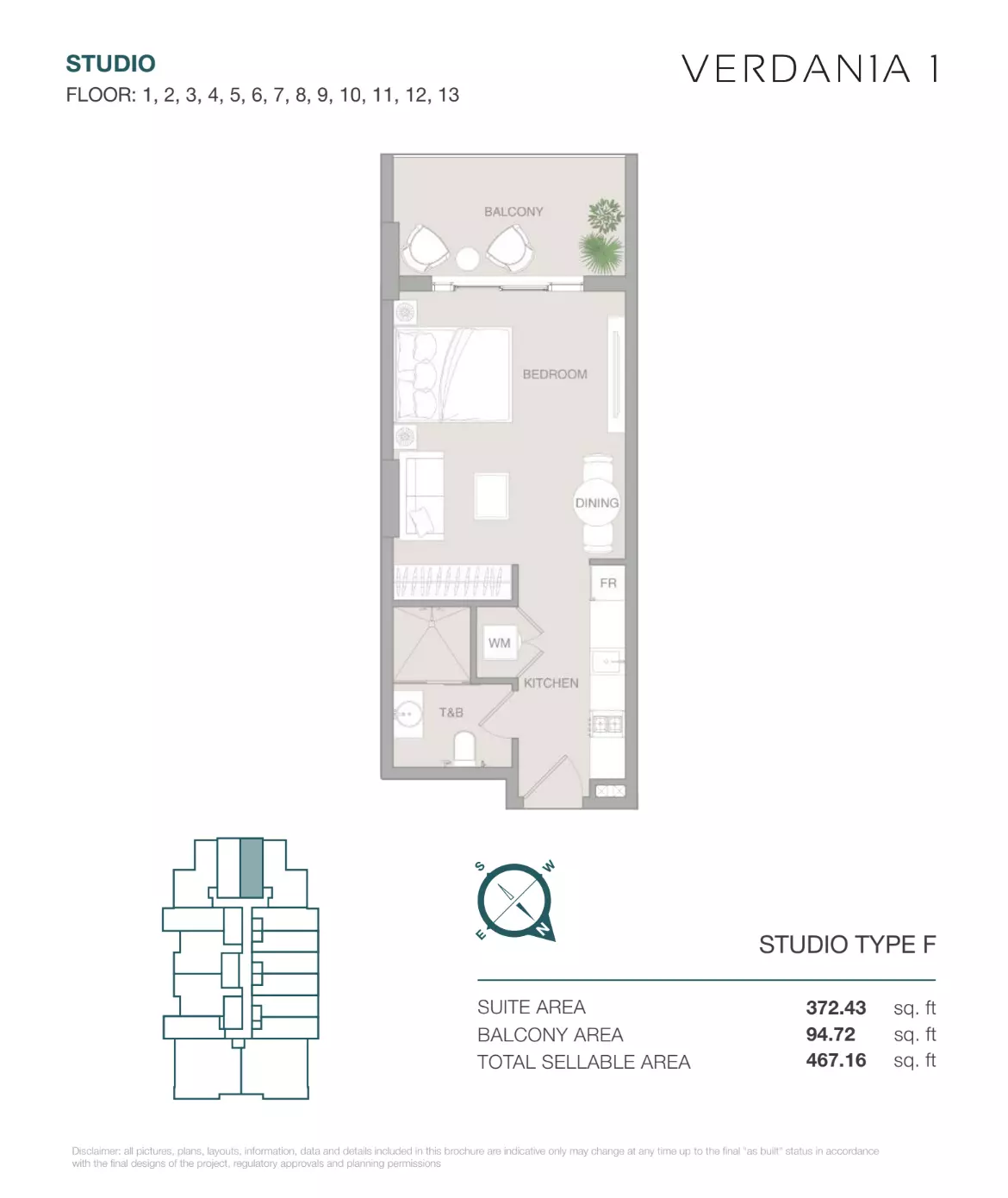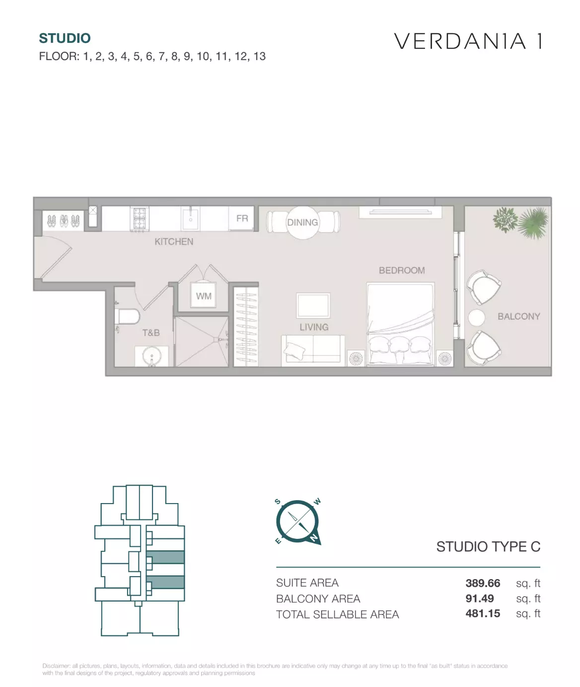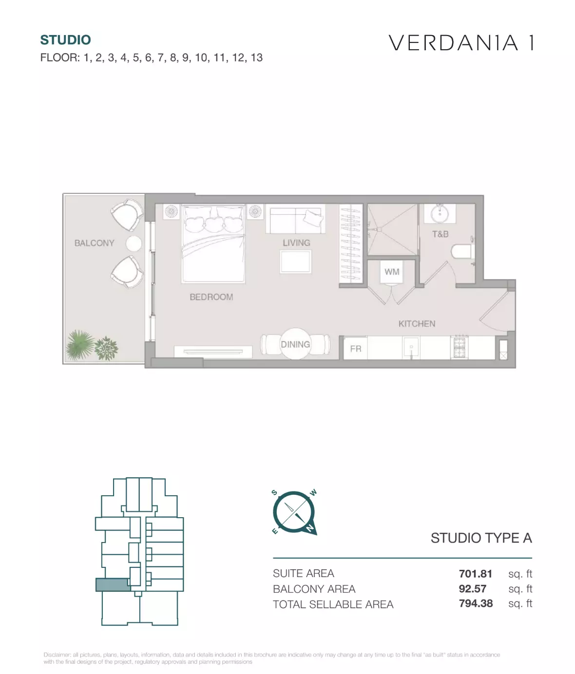 Verdan1a 1 offers the following apartment options: • Studio from 667K AED 467-794 sqft • 1 Bed from 1.1M AED 786-802 sqft • 3 Beds from1.7M AED 1350-1367 sqft