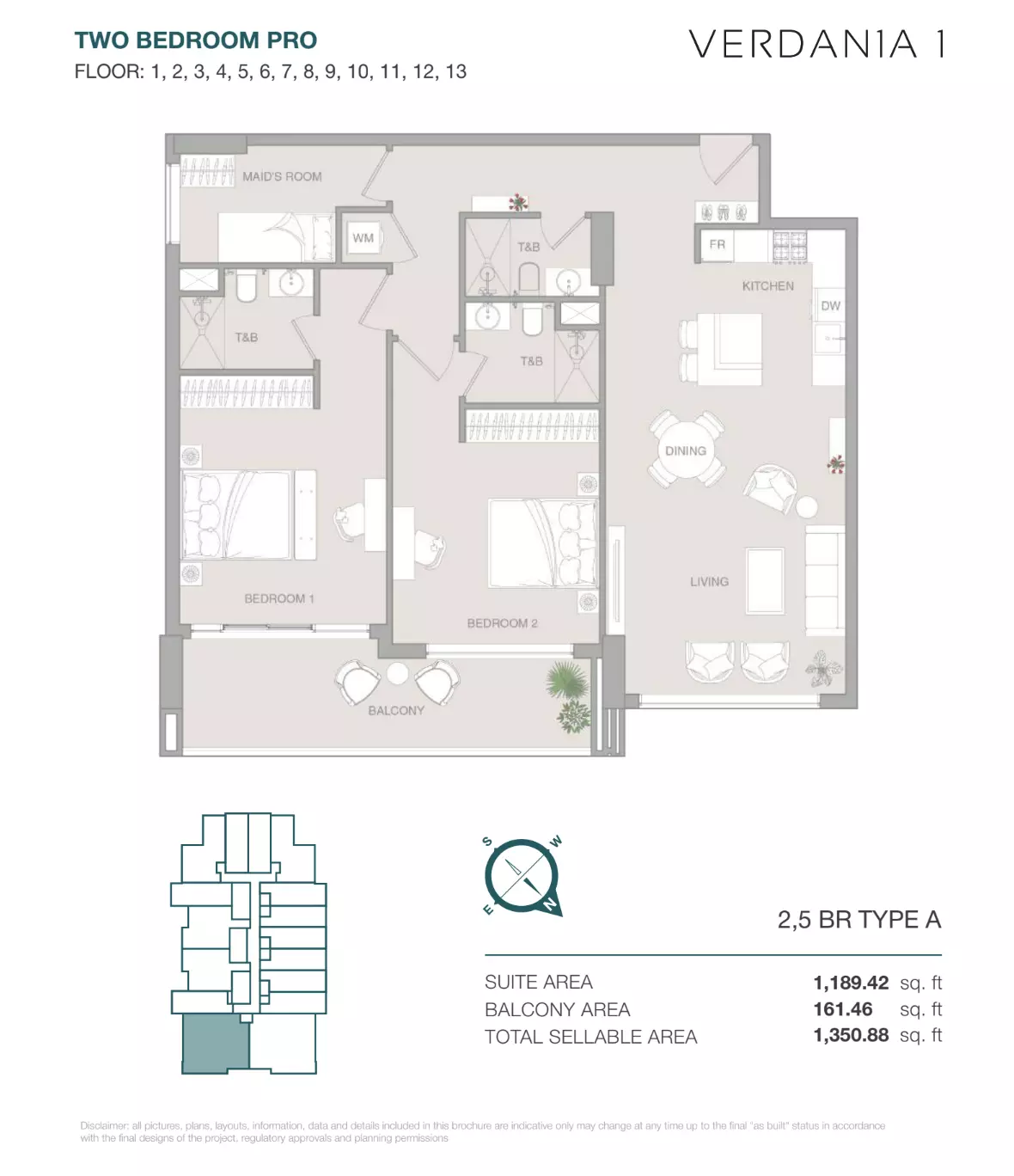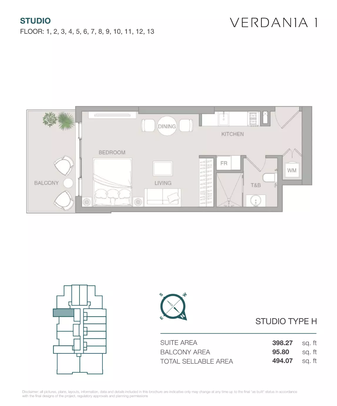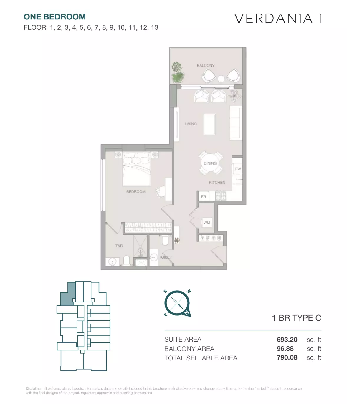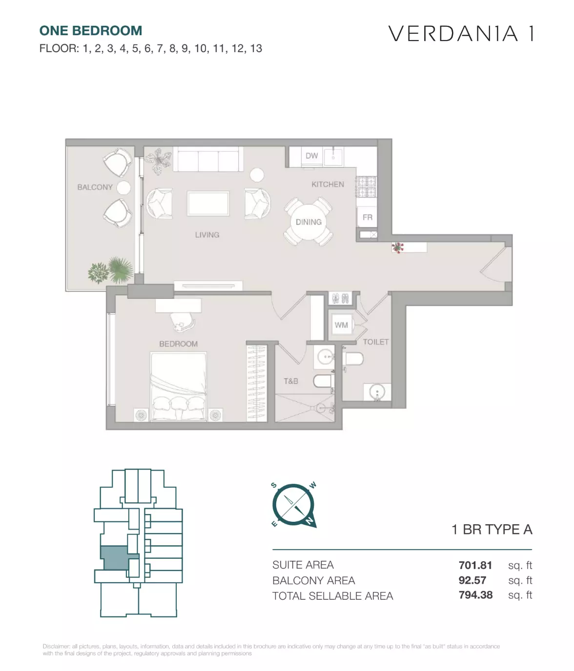 Verdan1a 1 offers the following apartment options: • Studio from 667K AED 467-794 sqft • 1 Bed from 1.1M AED 786-802 sqft • 3 Beds from1.7M AED 1350-1367 sqft
