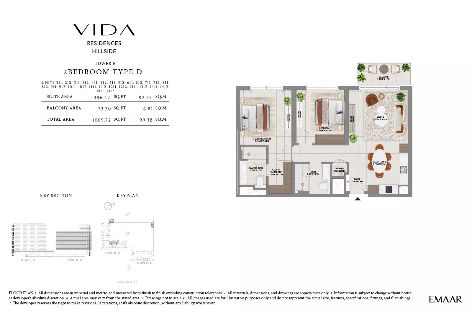 Vida Residences Hillside offers a range of upscale housing options in two residential towers—Tower A and Tower B—featuring both apartments and townhouses. In Tower A, 1-bedroom apartments are priced from AED 1.8 million with sizes between 756 to 829 sq ft. The 2-bedroom units start from AED 2.7 million and range from 1,250 to 1,542 sq ft. The 3-bedroom apartments are available from AED 3.9 million, offering sizes between 1,826 and 2,001 sq ft. For larger living, 3-bedroom townhouses start at AED 6.6 million with a size of 2,616 sq ft. Tower B offers similar options: 1-bedroom apartments from AED 1.8 million (726–871 sq ft), 2-bedroom units from AED 2.7 million (1,064–1,299 sq ft), and 3-bedroom apartments from AED 3.9 million (1,582–1,837 sq ft). Townhouses in Tower B also start from AED 6.6 million, each with 2,616 sq ft of space. These options combine luxurious finishes, functional layouts, and prime location benefits, making them ideal for investors and end-users alike.