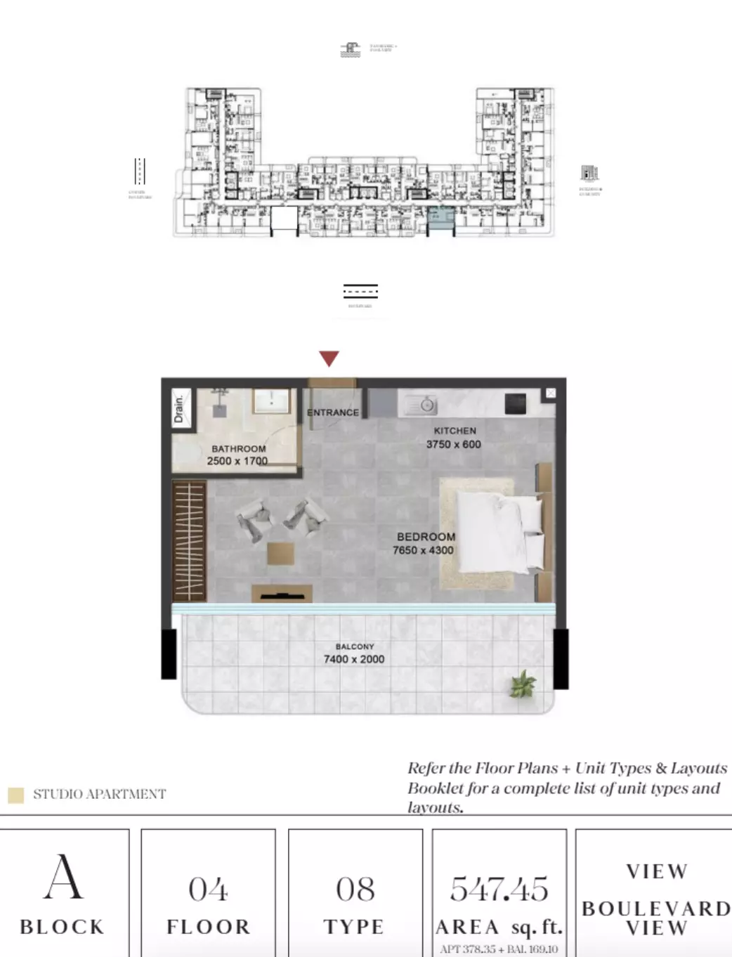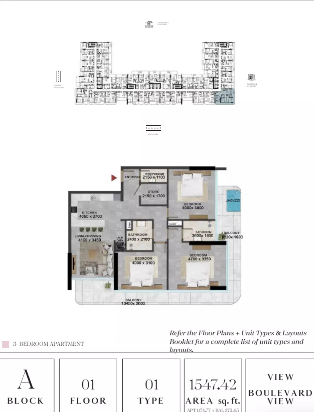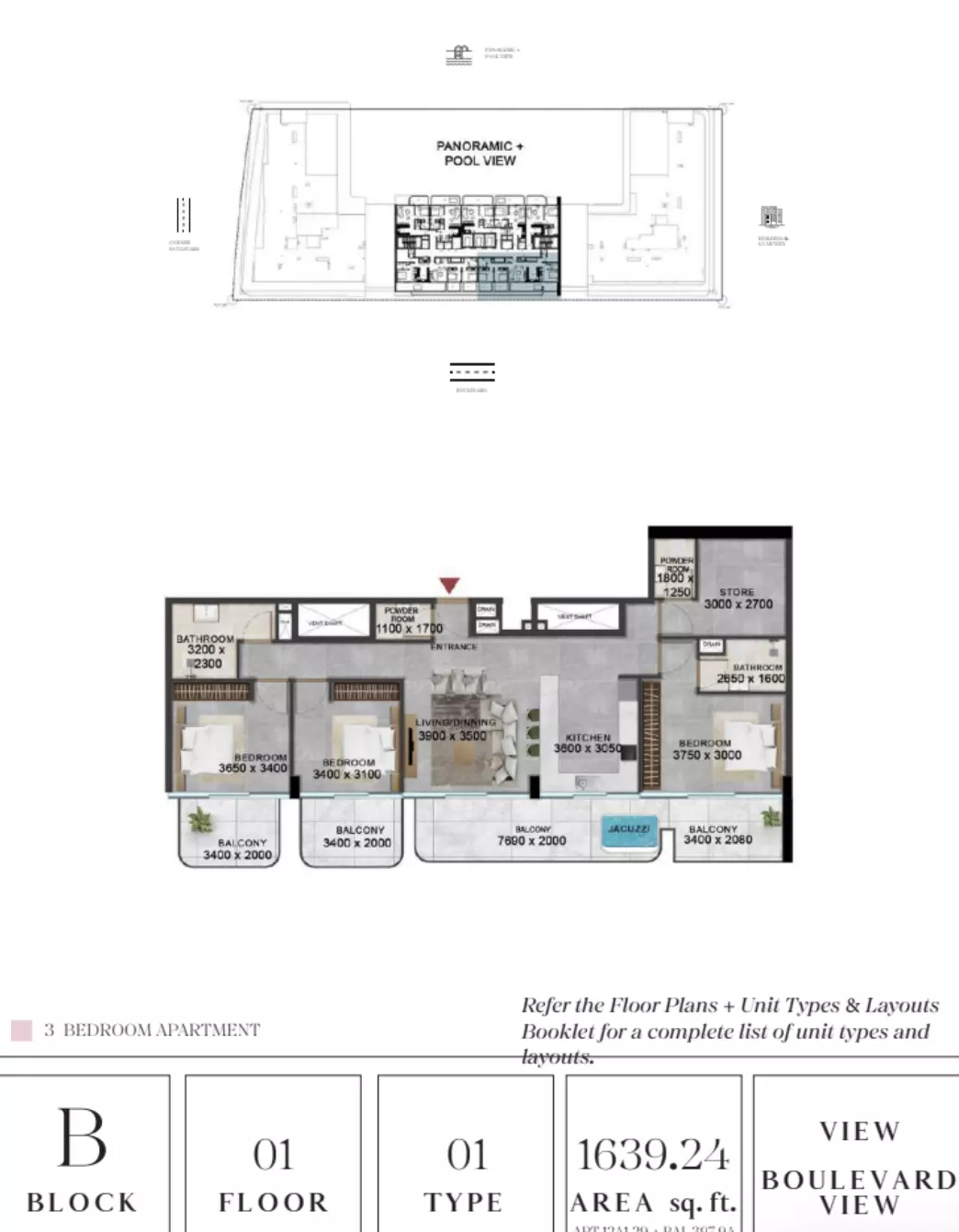 Vivanti Residences offers a selection of apartments in various sizes, catering to different lifestyle and investment needs. The available unit types include studios, 1-bedroom, 2-bedroom, and 3-bedroom apartments. Studio units range from 343 to 547 square feet, with starting prices from AED 650,000. One-bedroom apartments range from 705 to 993 square feet, starting at AED 1.1 million. Two-bedroom units vary between 930 and 1,621 square feet, with prices beginning at AED 1.5 million. The largest option, 3-bedroom apartments, range from 1,547 to 1,639 square feet and start from AED 2.1 million. Each unit is designed to provide functional layouts and modern living spaces.