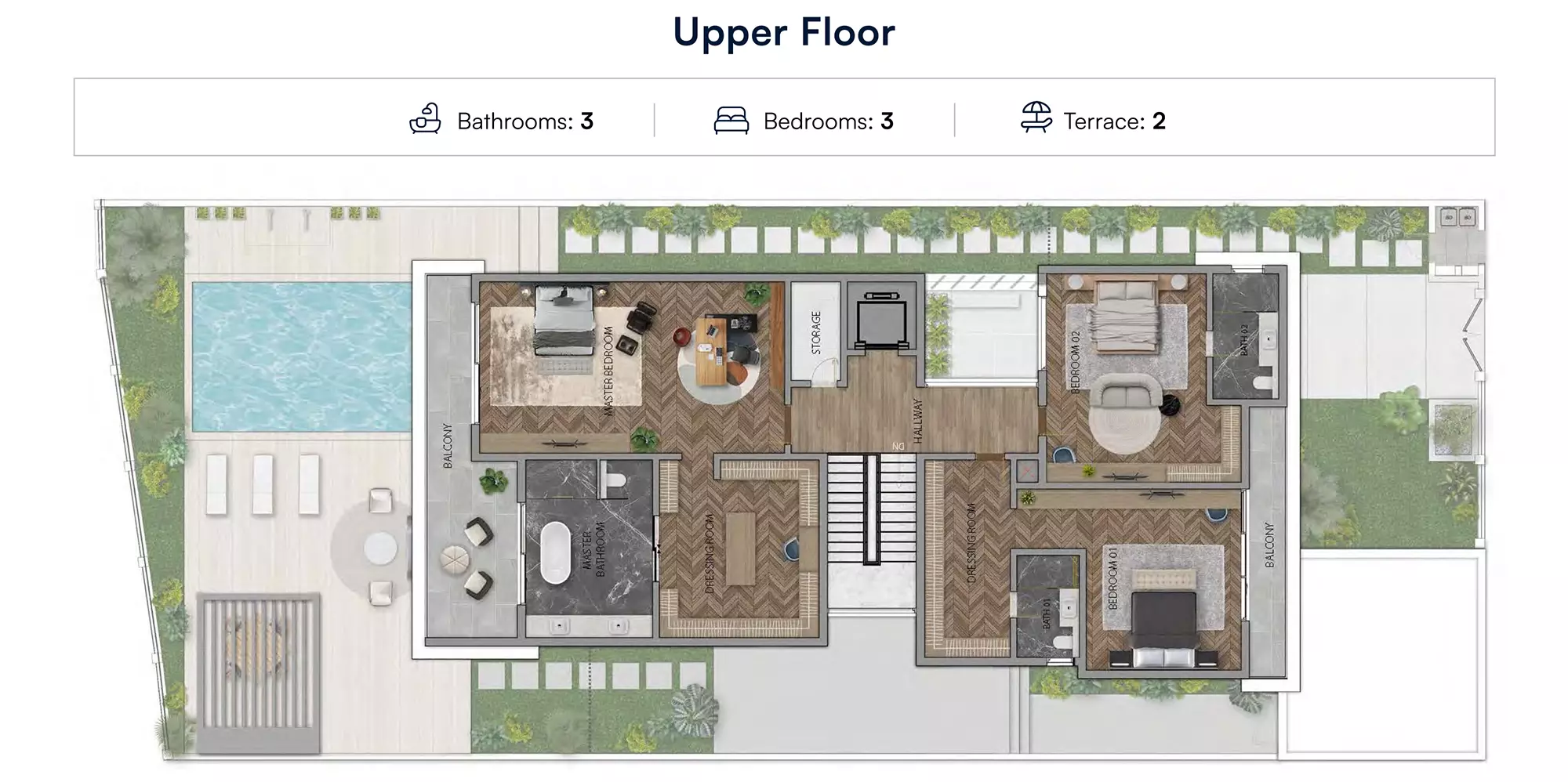 Waterview Villas offers luxurious villas with spacious layouts. The available housing options are: 4-Bedroom Villas: These range in size from 7,212 sqft to 7,535 sqft, providing ample space for families seeking comfort and elegance. 5-Bedroom Villas: These villas range from 7,223 sqft to 7,965 sqft, offering even more space for larger families or those desiring extra room for amenities and personalization. These villas provide a high standard of living, perfect for those looking for a blend of luxury and functionality in the prestigious Jumeirah Park area.