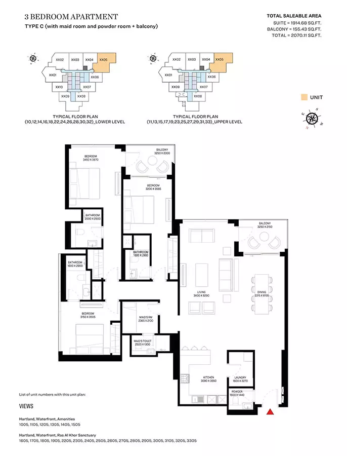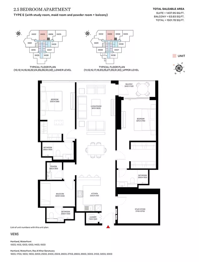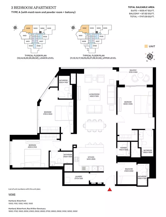 | Type A (With Maid Room and Powder Room + Balcony) Lower&Upper Level | 2,724.00 | View |