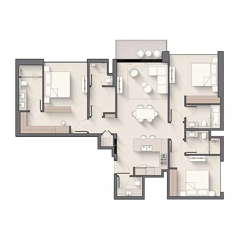 Windsor House offers a range of thoughtfully designed housing options in Dubai South, catering to different lifestyle needs. The development features modern studio apartments measuring 432 square feet, ideal for individuals or young professionals. One-bedroom apartments are available starting from AED 1.2M, offering a comfortable living space of 779 square feet. For those needing more room, two-bedroom apartments start from AED 1.7M and cover 1,127 square feet. Families or larger households can opt for the spacious three-bedroom apartments, starting from AED 2.4M, with a size of 1,489 square feet. Each unit is designed with modern finishes and functional layouts.