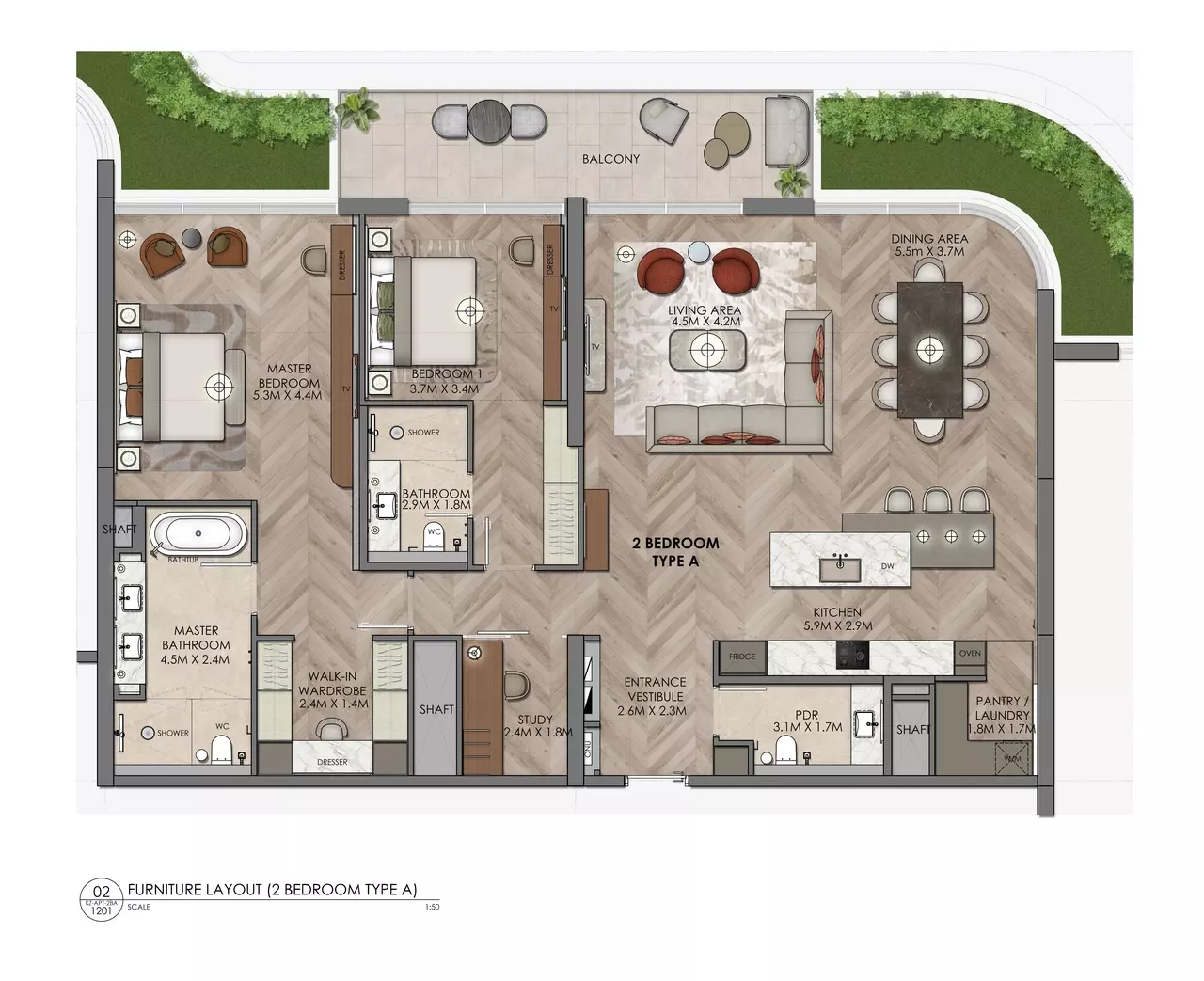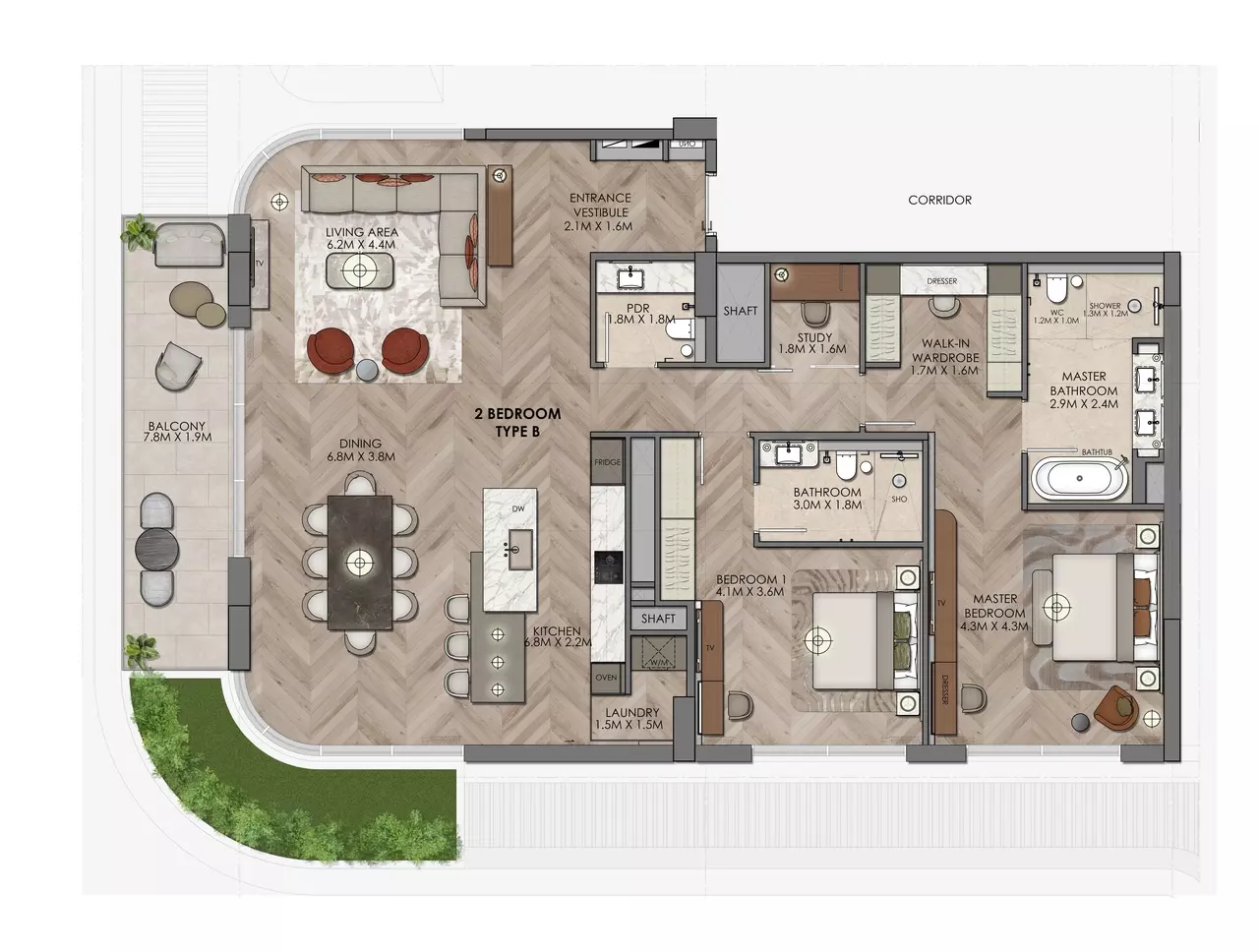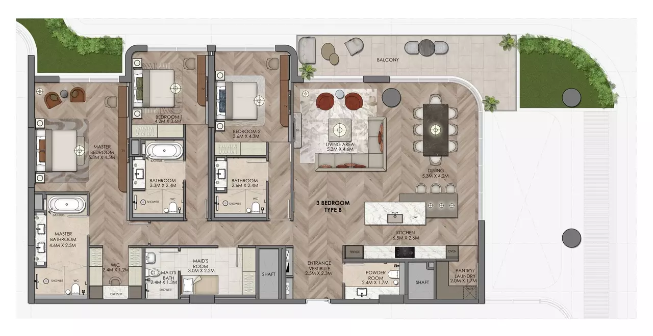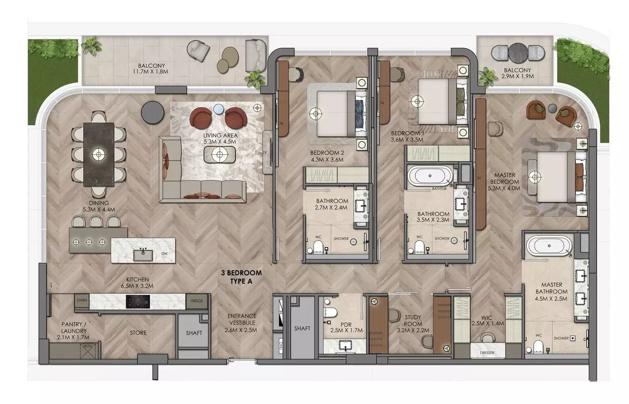 Yas Links Luxury Living offers a premium selection of fully furnished apartments designed to meet high-end residential standards. The available unit types include 1-bedroom, 2-bedroom, and 3-bedroom duplex apartments. Each residence is crafted with spacious layouts, refined finishes, and expansive windows that offer views of the golf course or surrounding landscape. The 1-bedroom apartments are ideal for individuals or couples, while the 2-bedroom units provide additional space suitable for small families. The 3-bedroom duplexes cater to those seeking larger, multi-level living spaces with enhanced privacy and comfort. Prices start from AED 3,800,000, with each unit offering access to private amenities such as a fitness center, spa, cinema, and owners’ lounge.