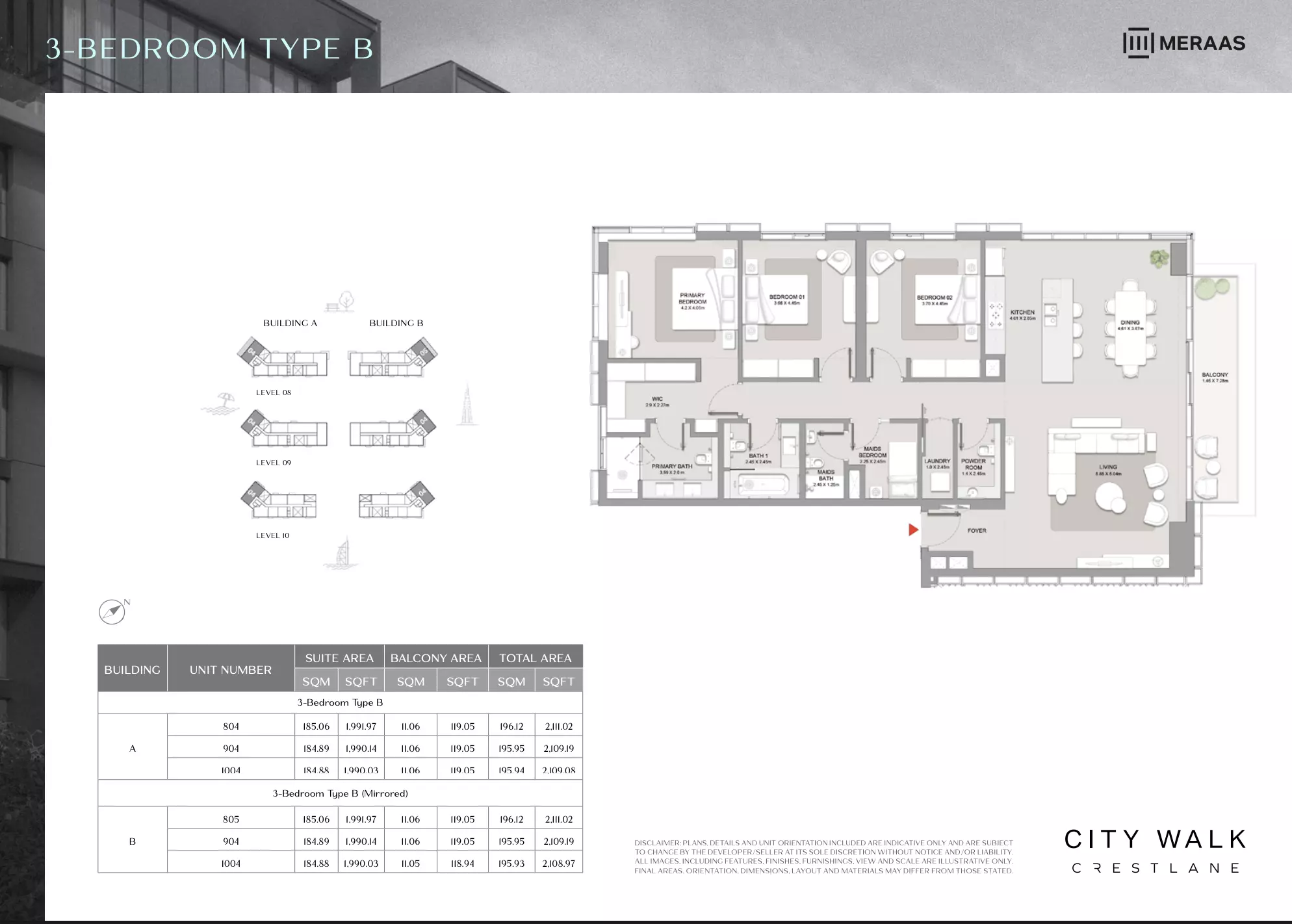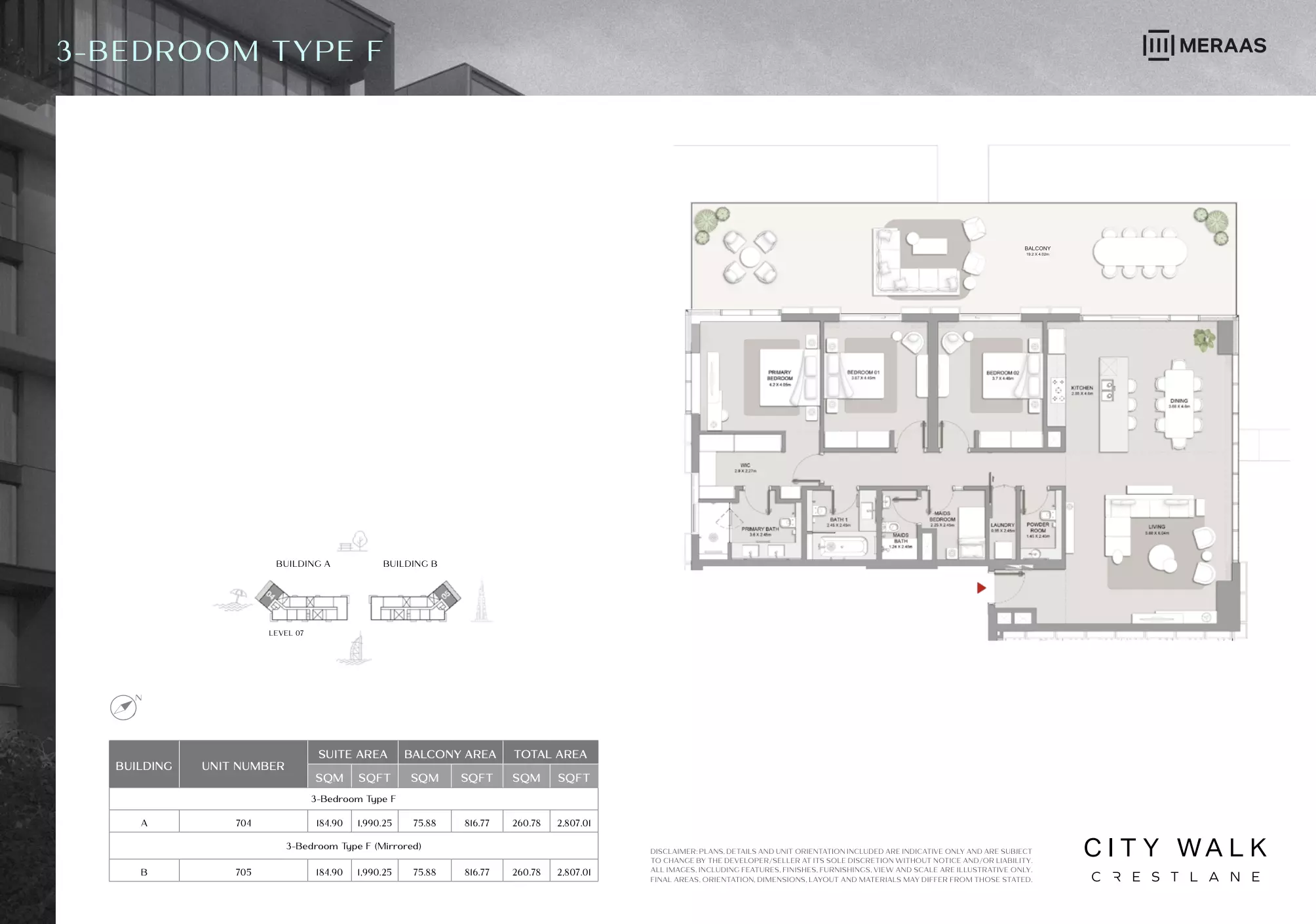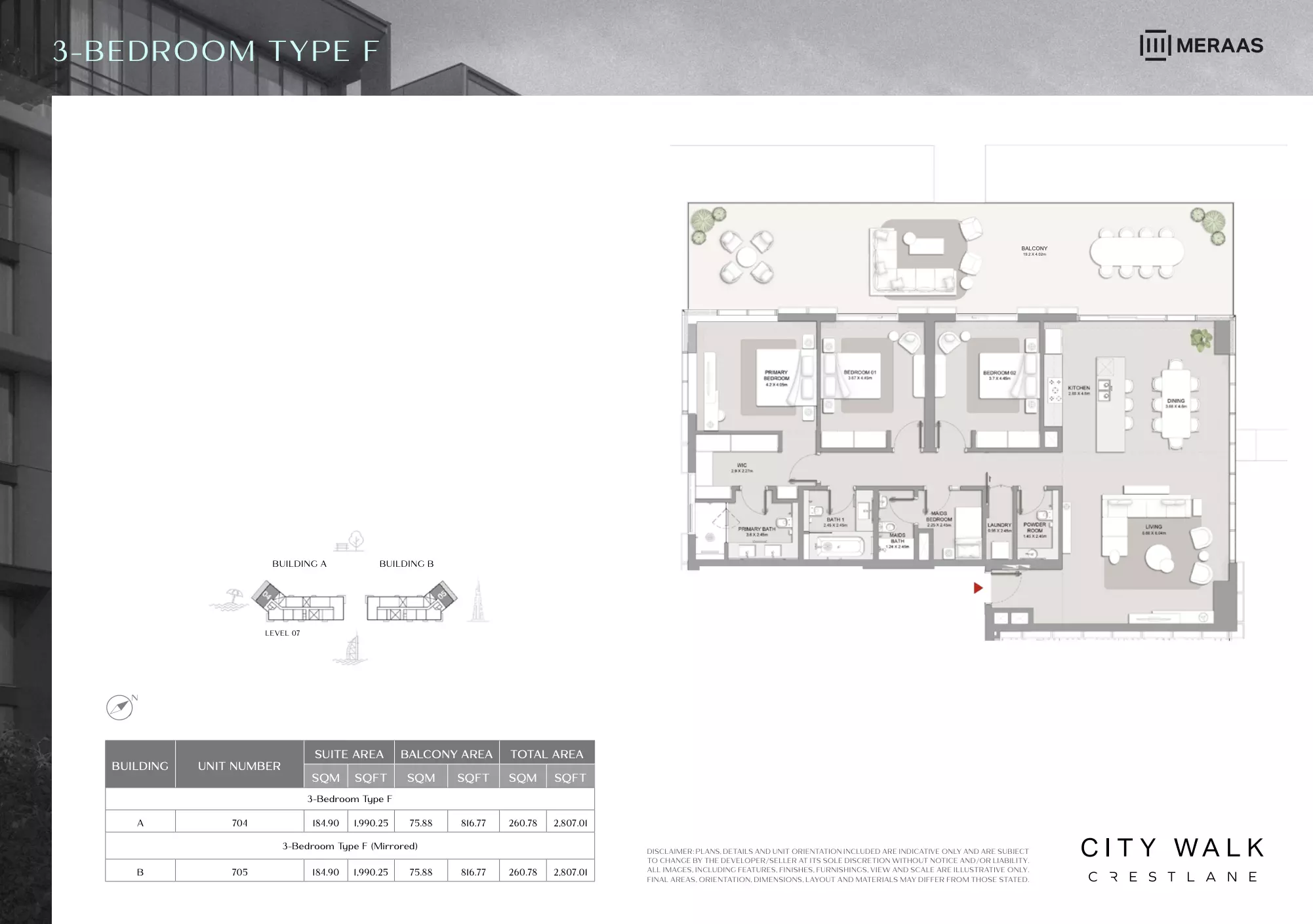 | Type F Mirrored - 3 BR | 2,807.00 | View |