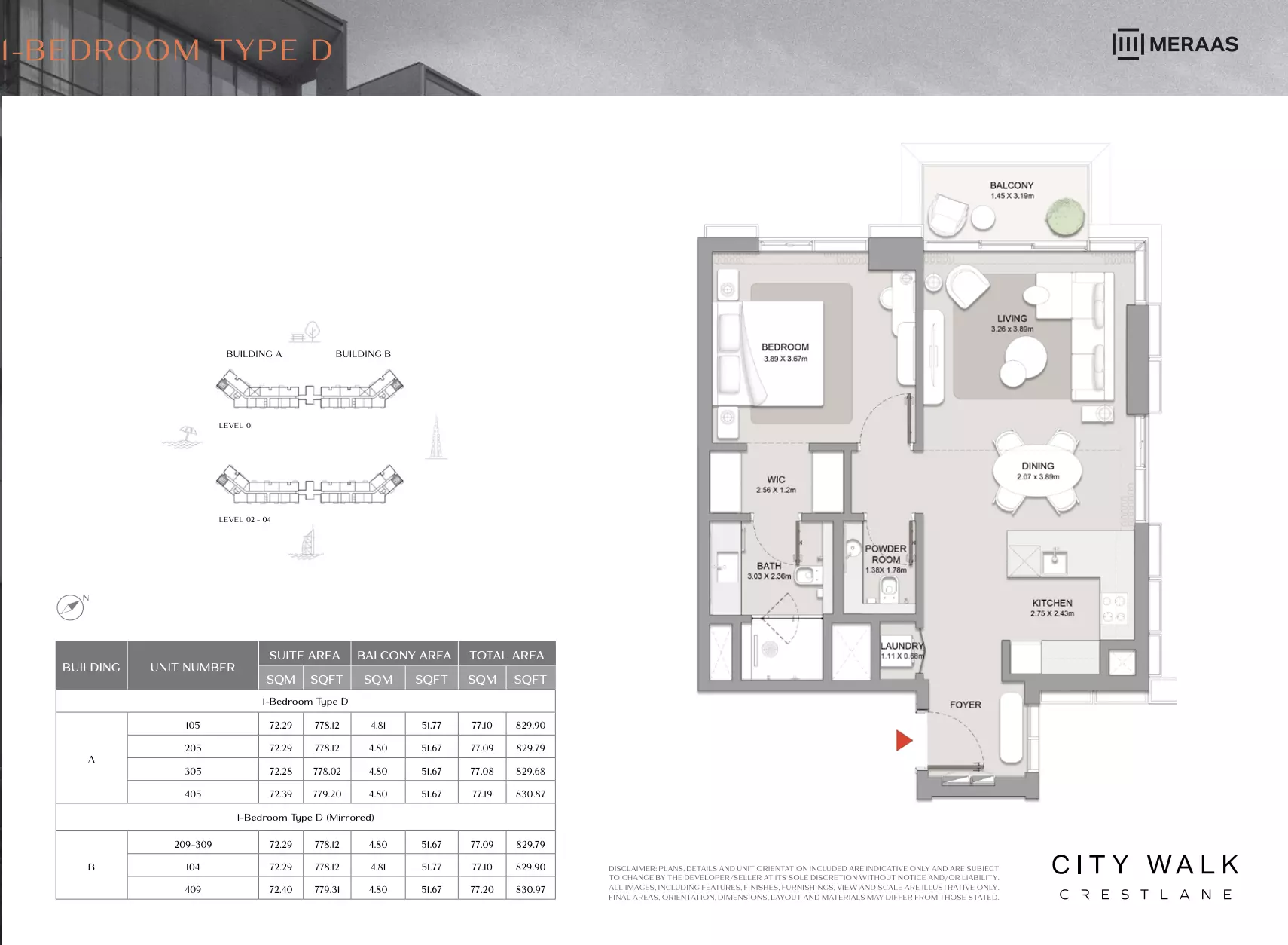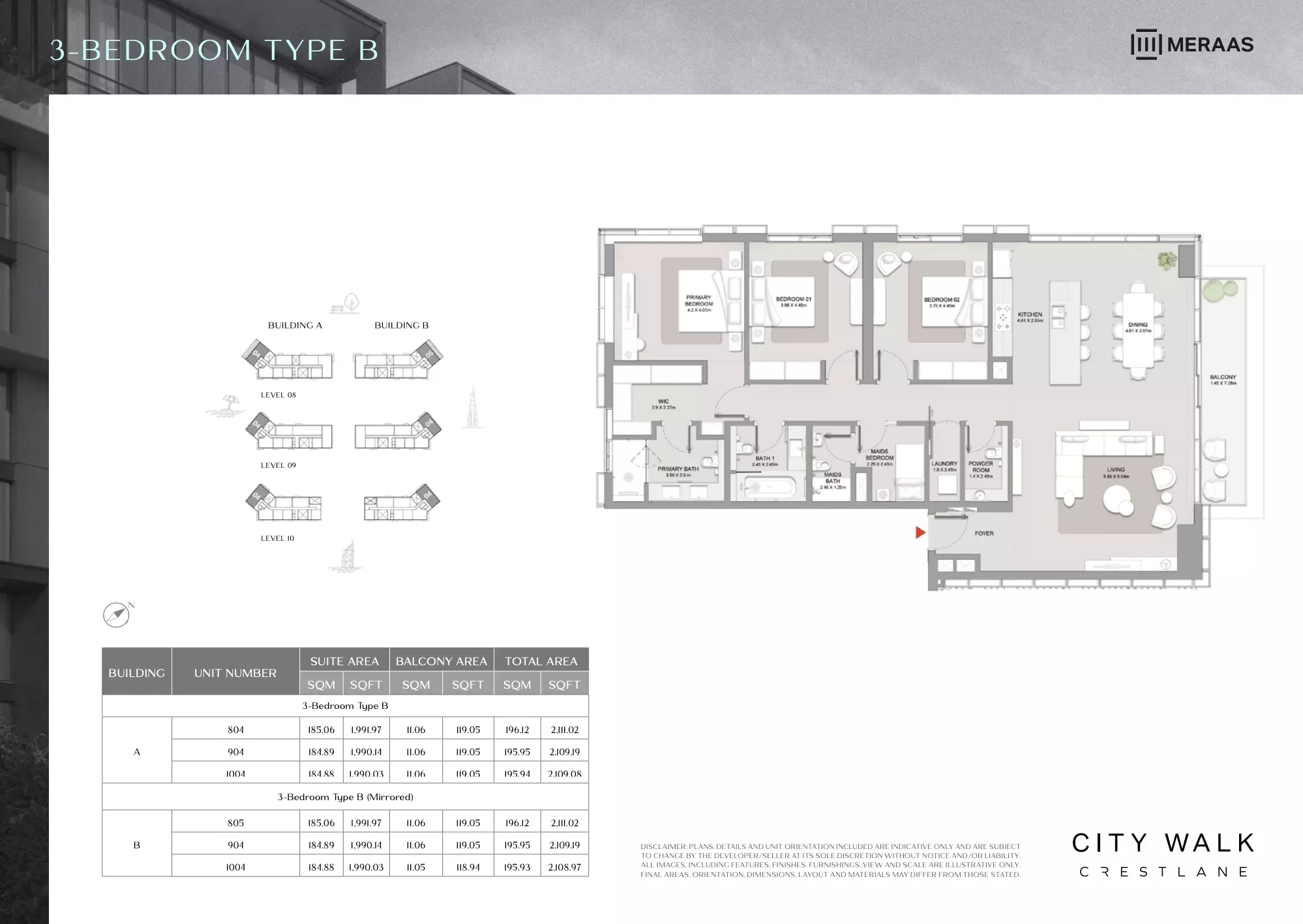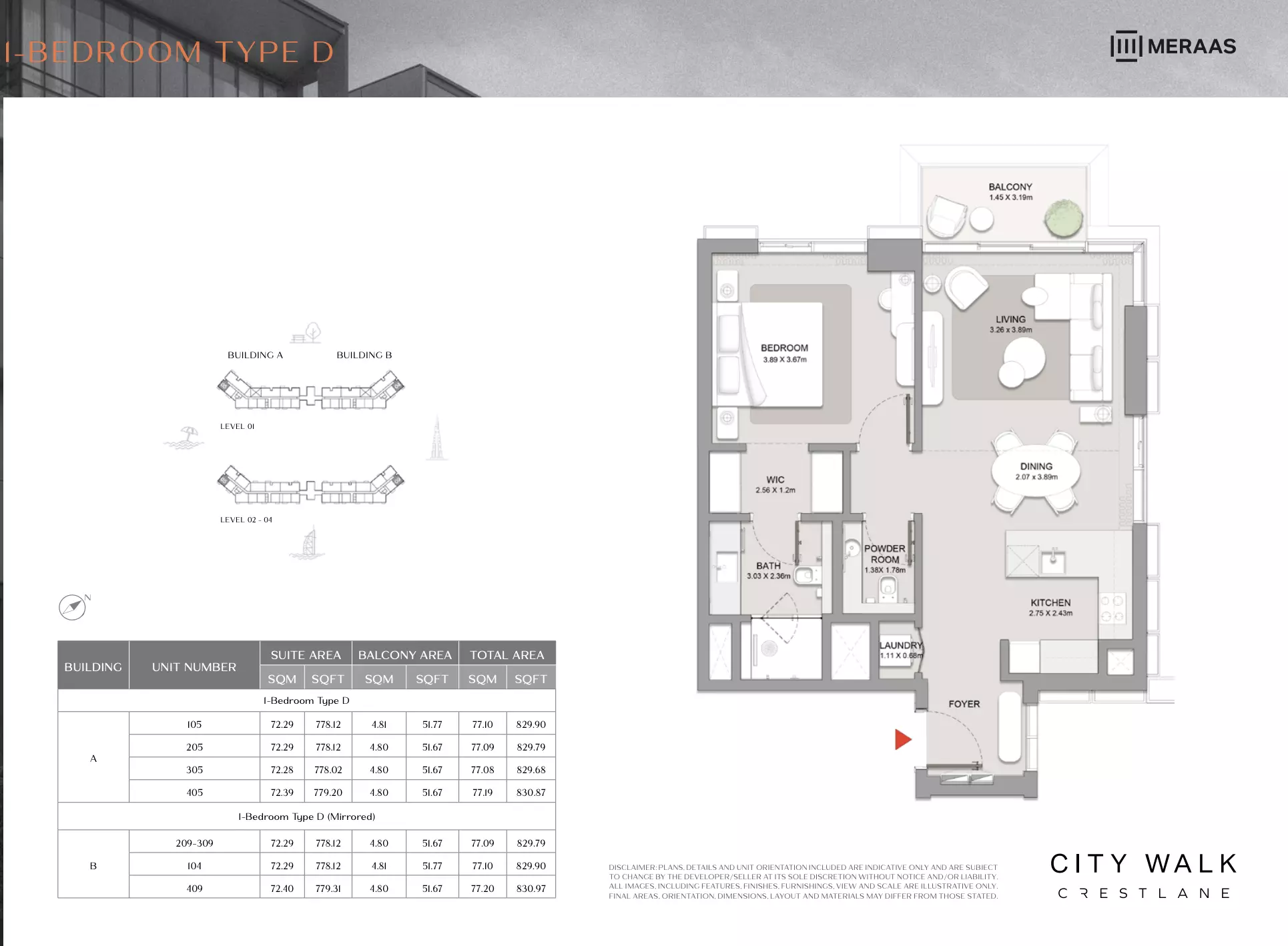 | Type F Mirrored - 3 BR | 2,807.00 | View |