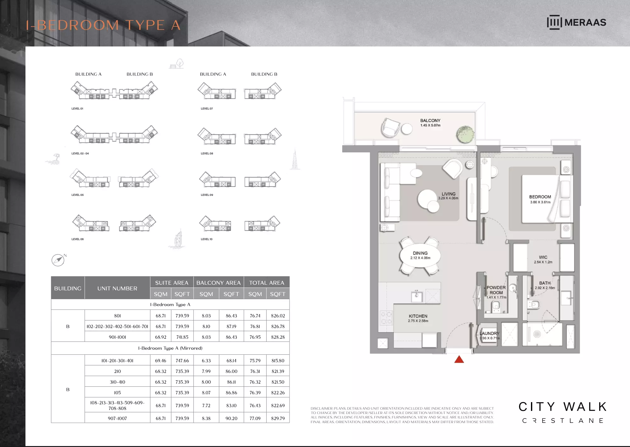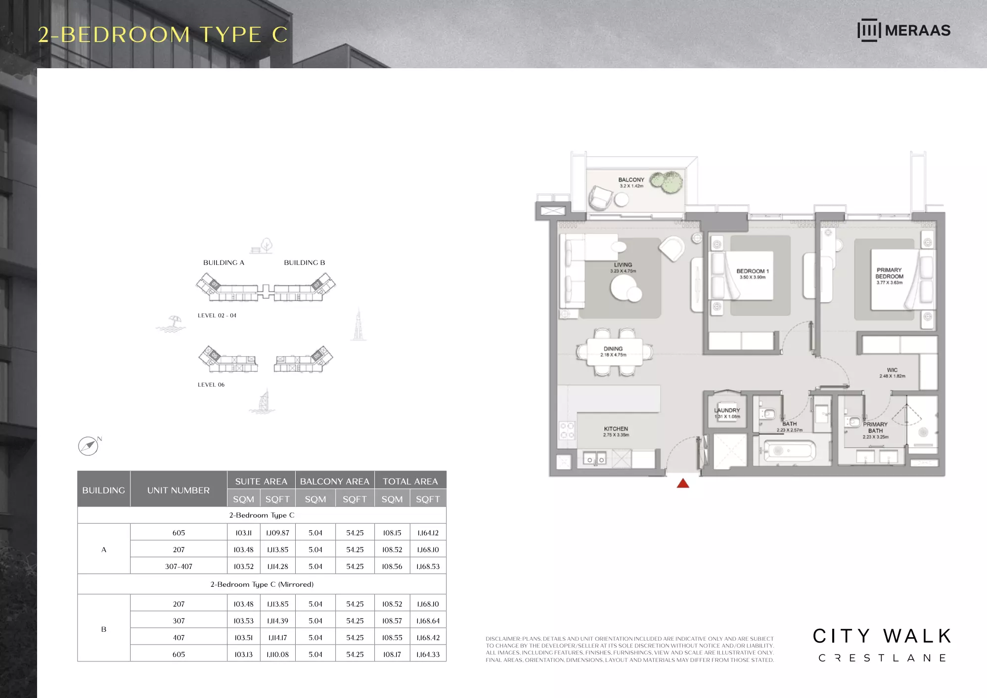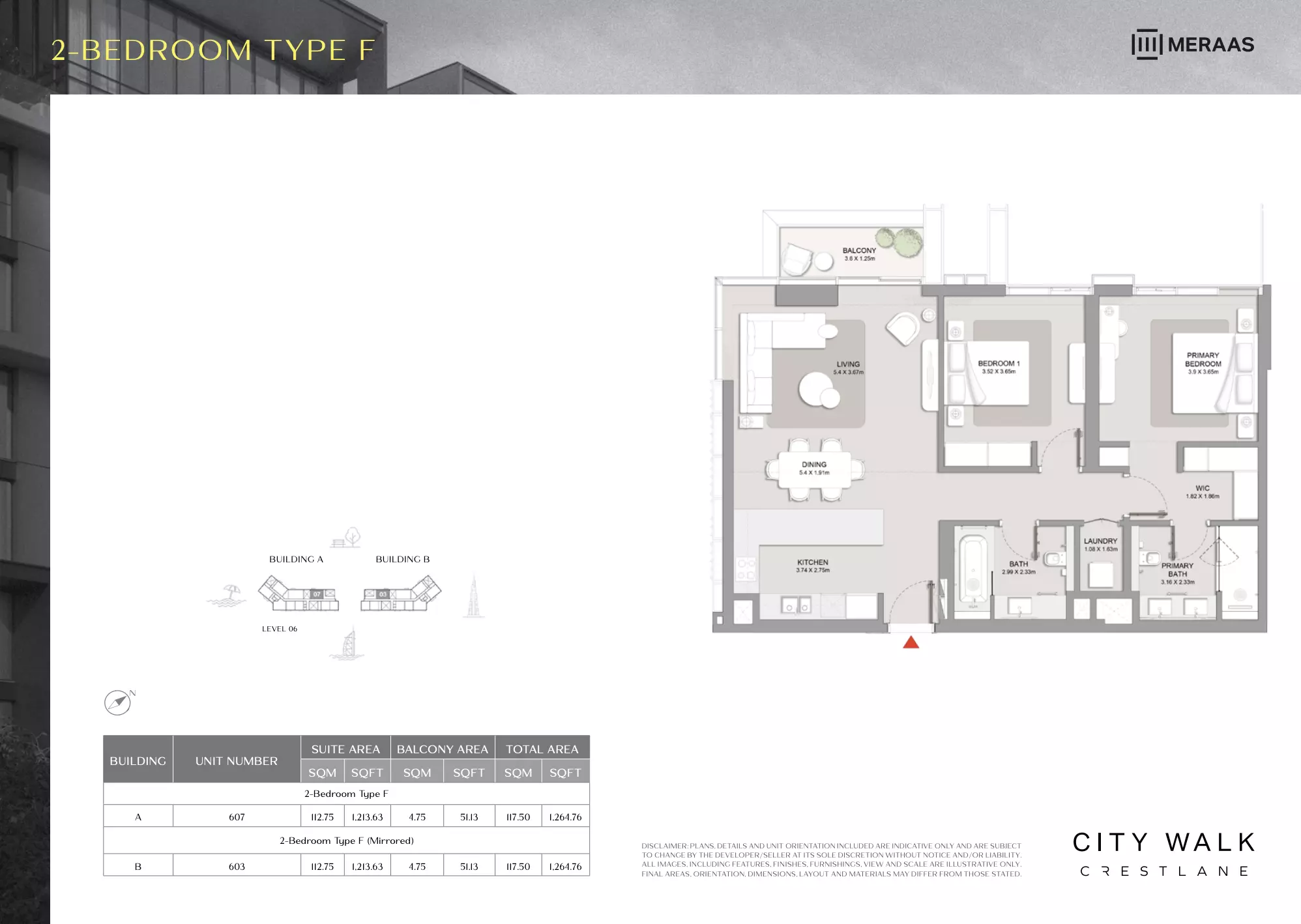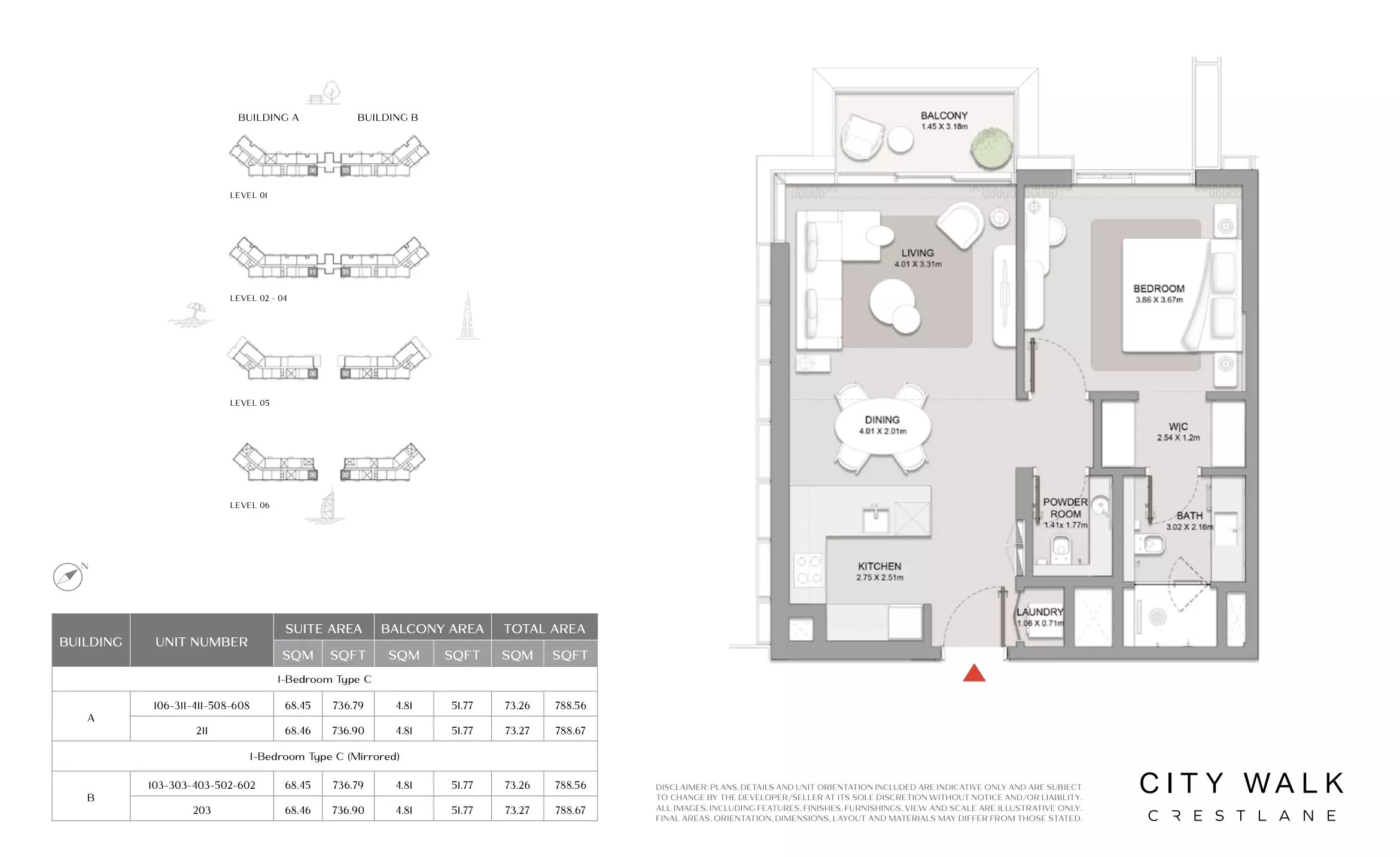 قیمت اولیه واحدها در سیتی واک کرستلین ۲,۶۲۰,۰۰۰ درهم امارات است.