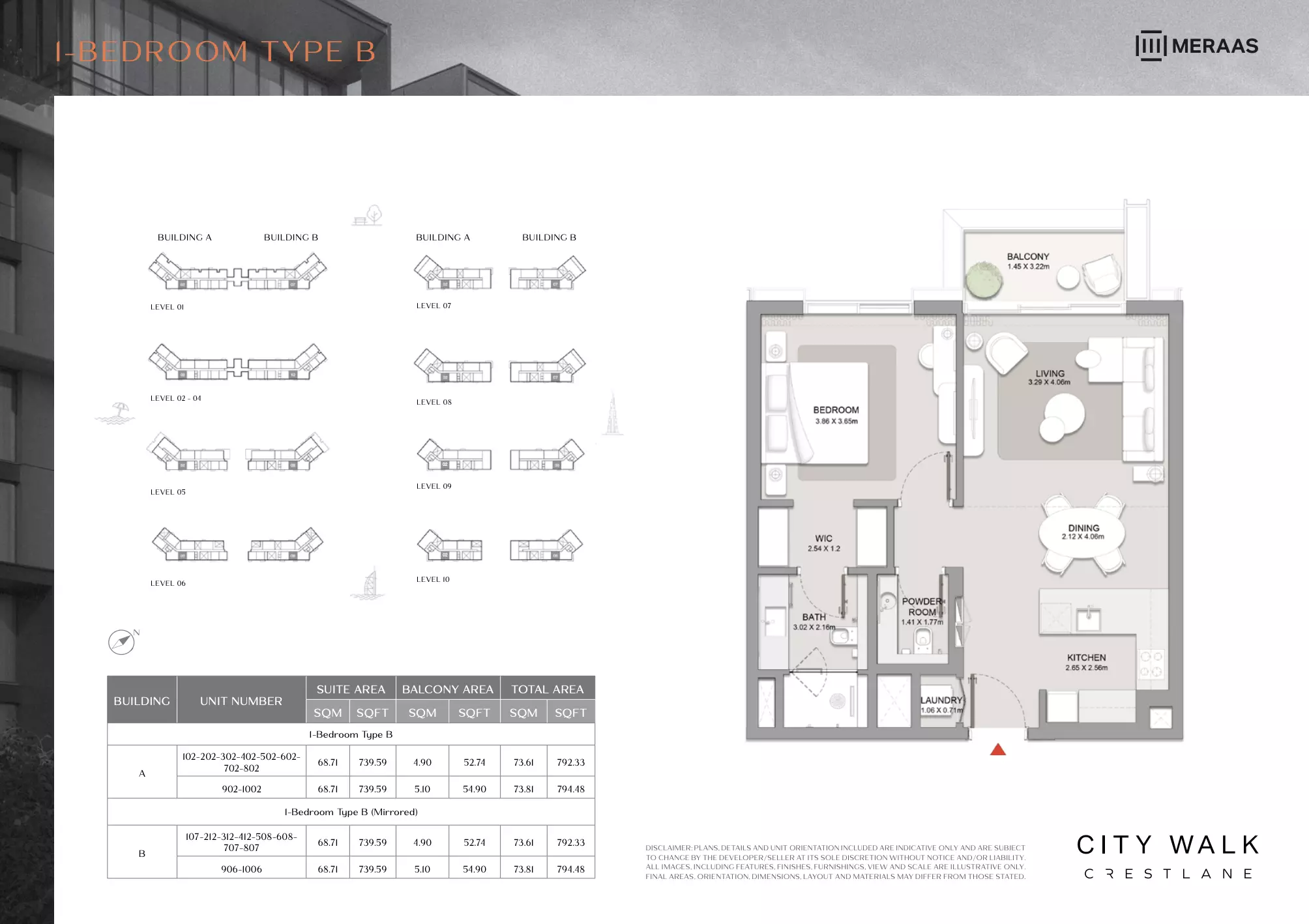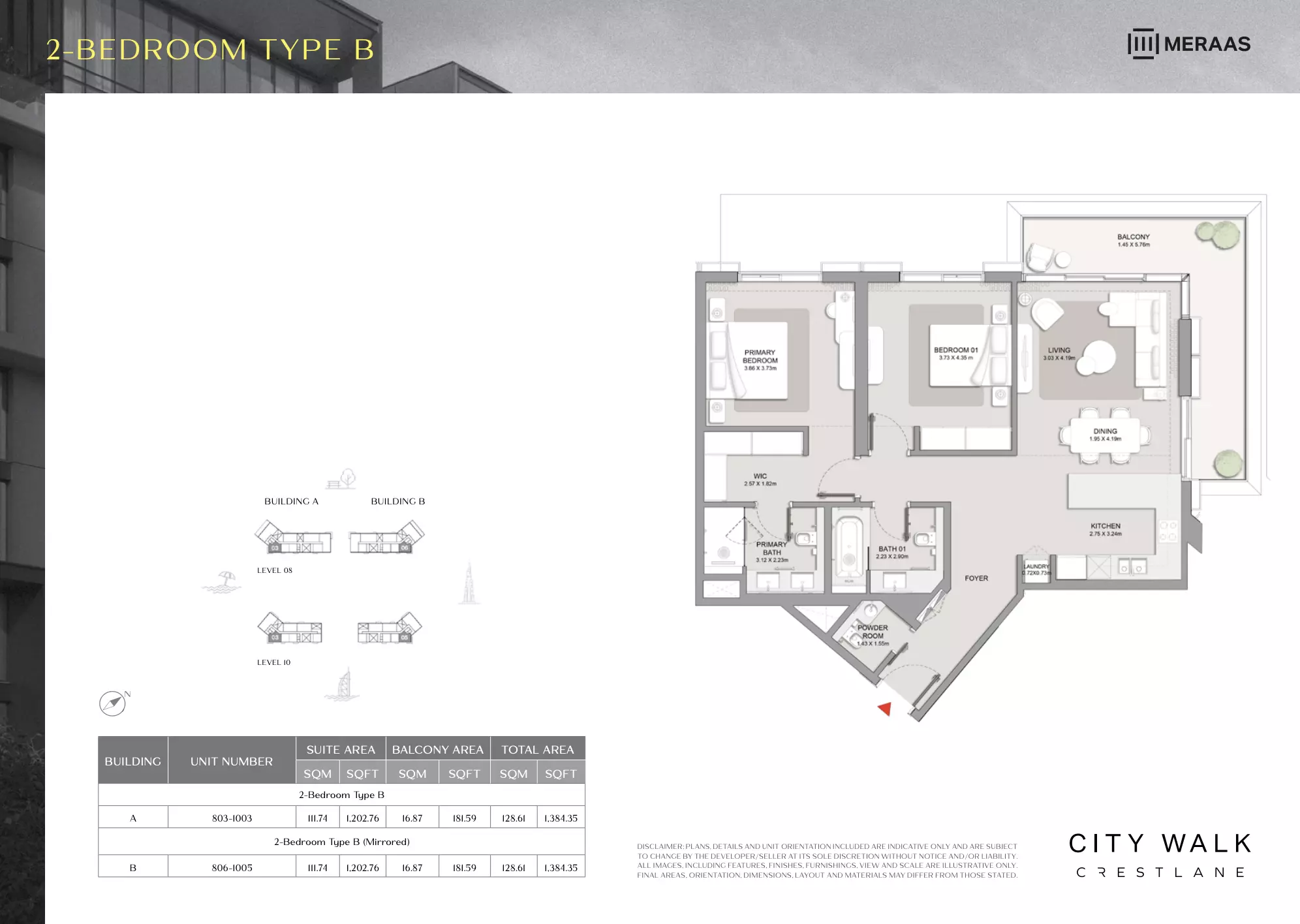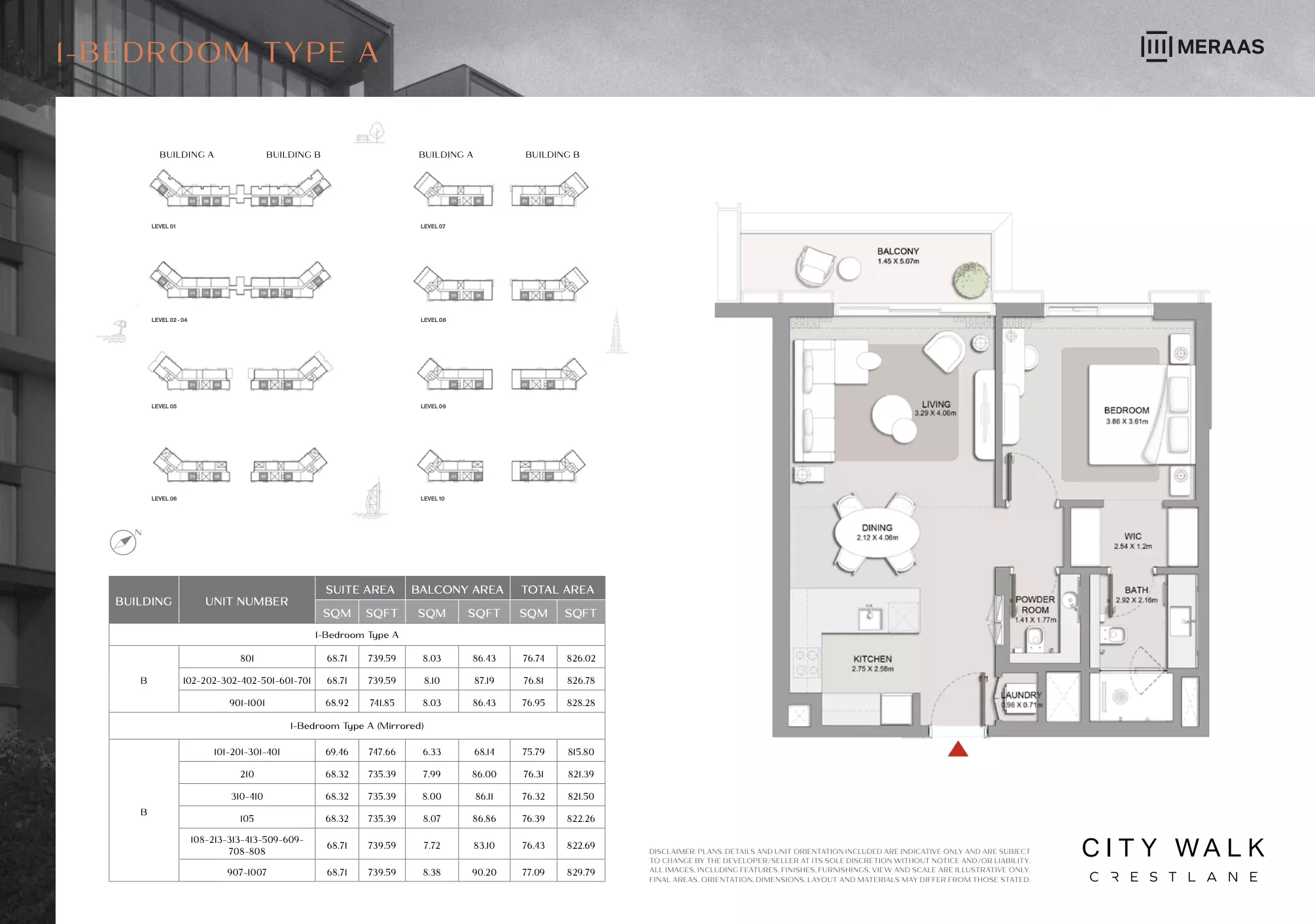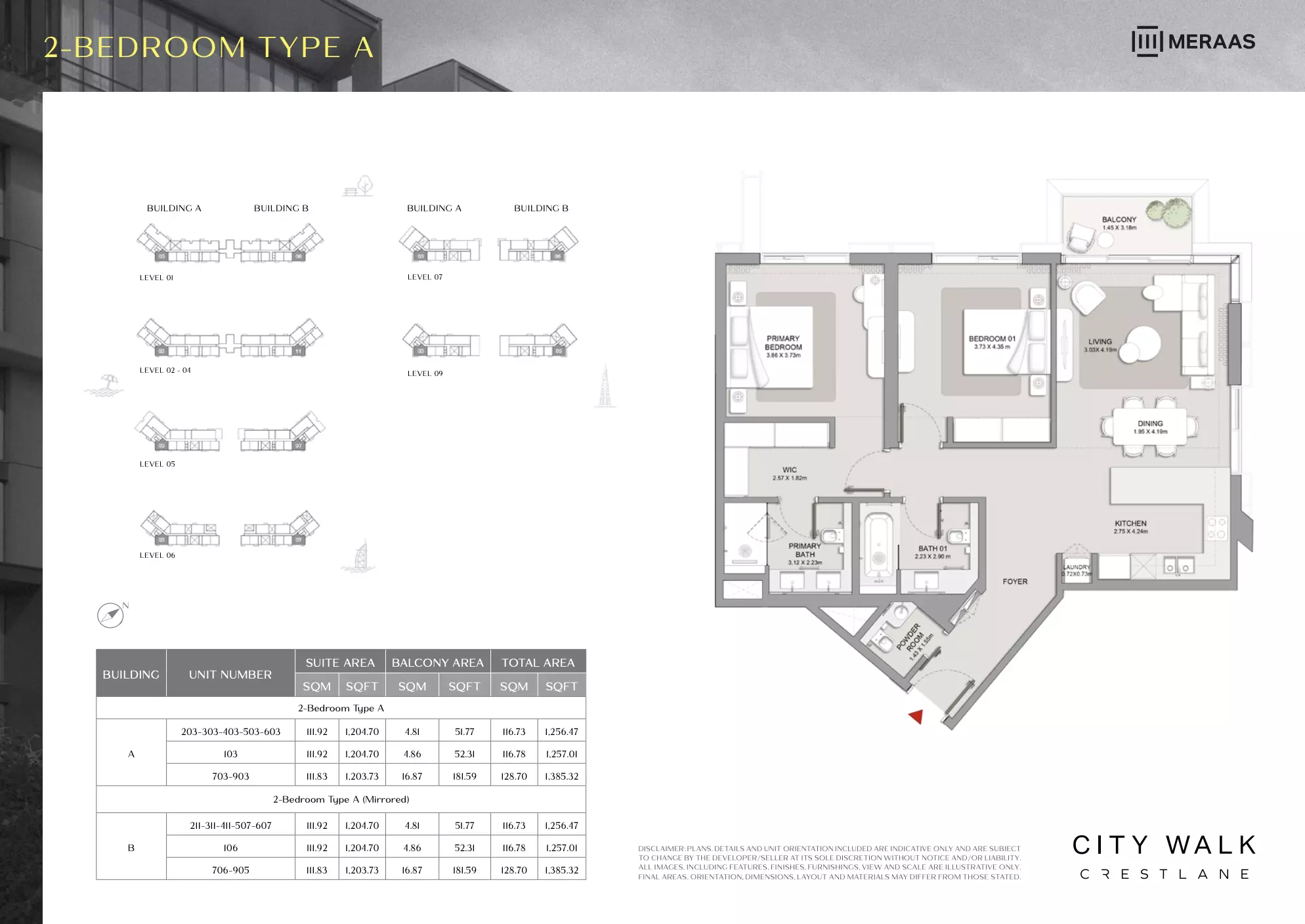 قیمت اولیه واحدها در سیتی واک کرستلین ۲,۶۲۰,۰۰۰ درهم امارات است.