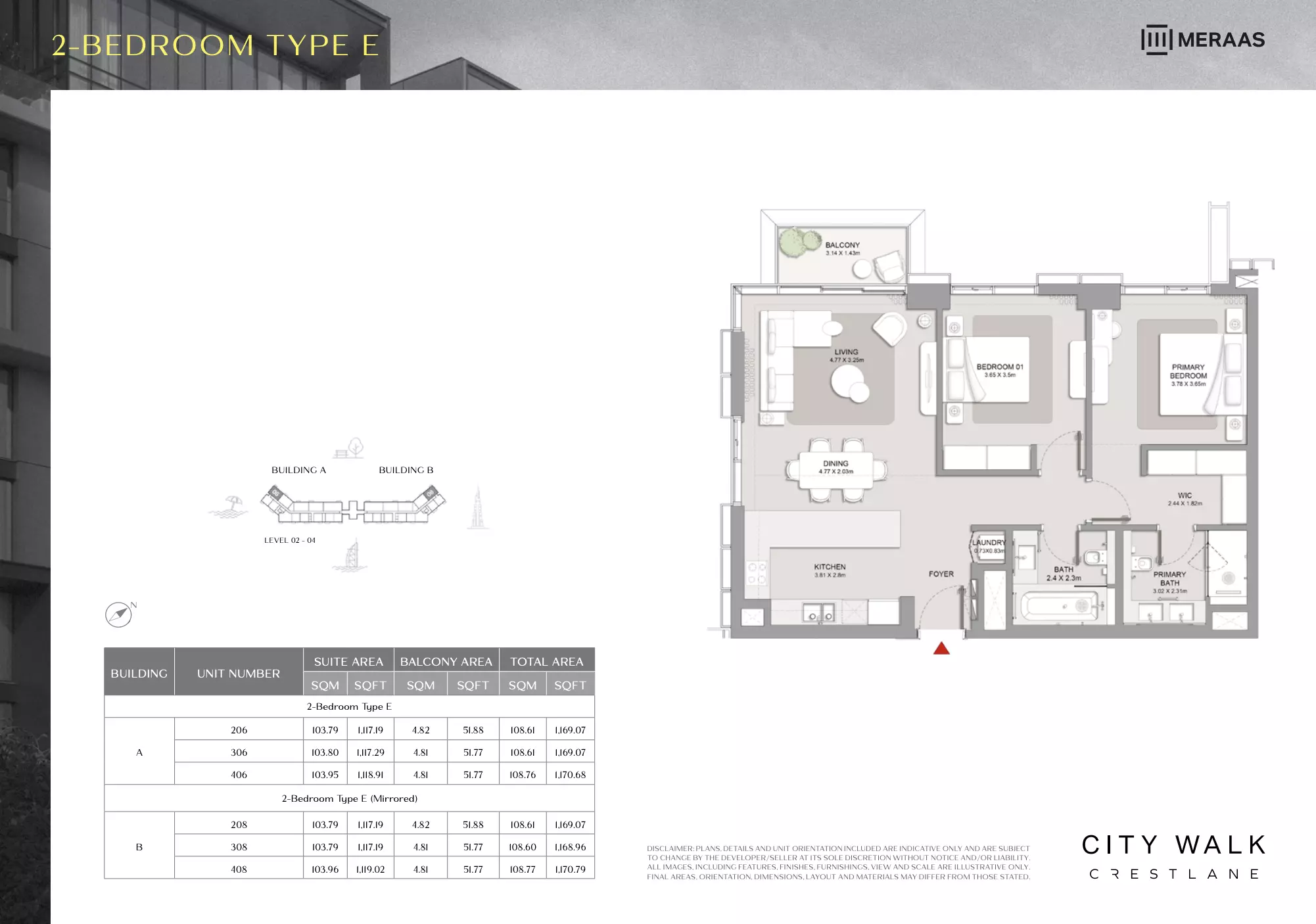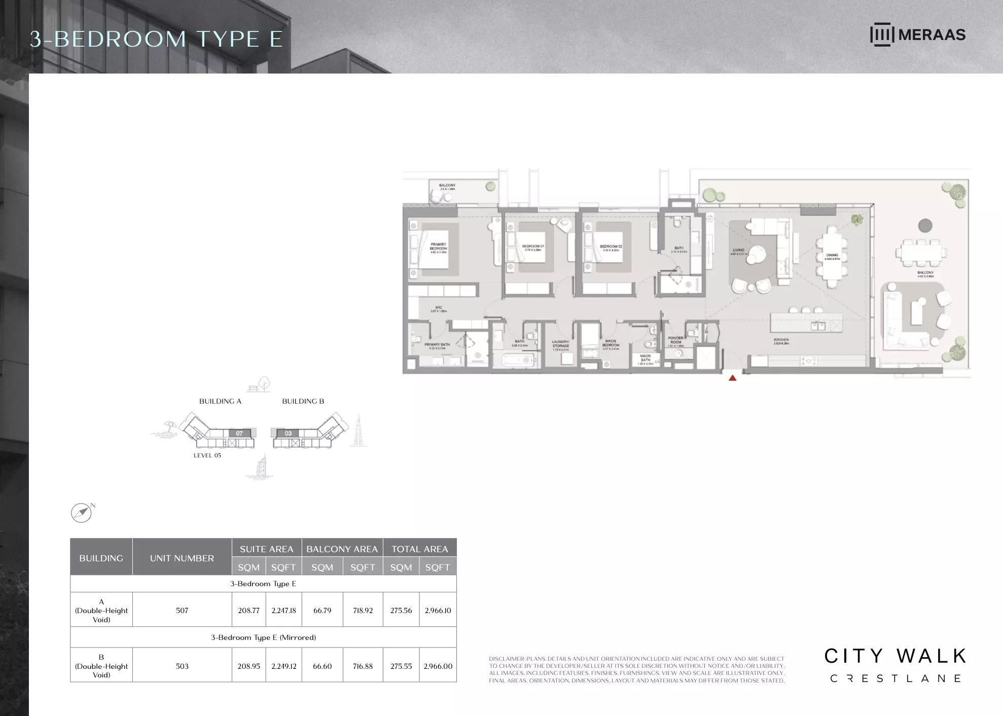 | Type E Mirrored - 3 BR | 2,960.00 | View |
