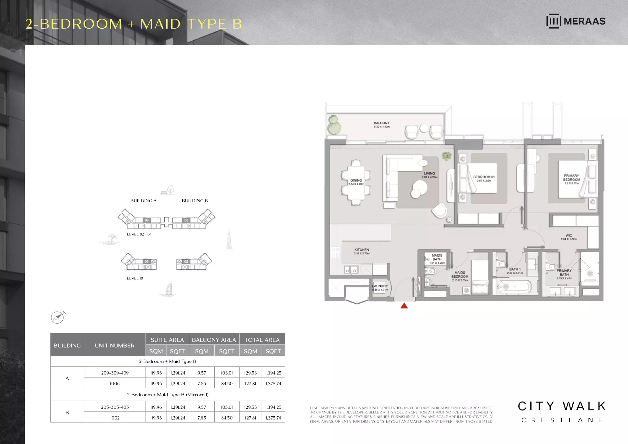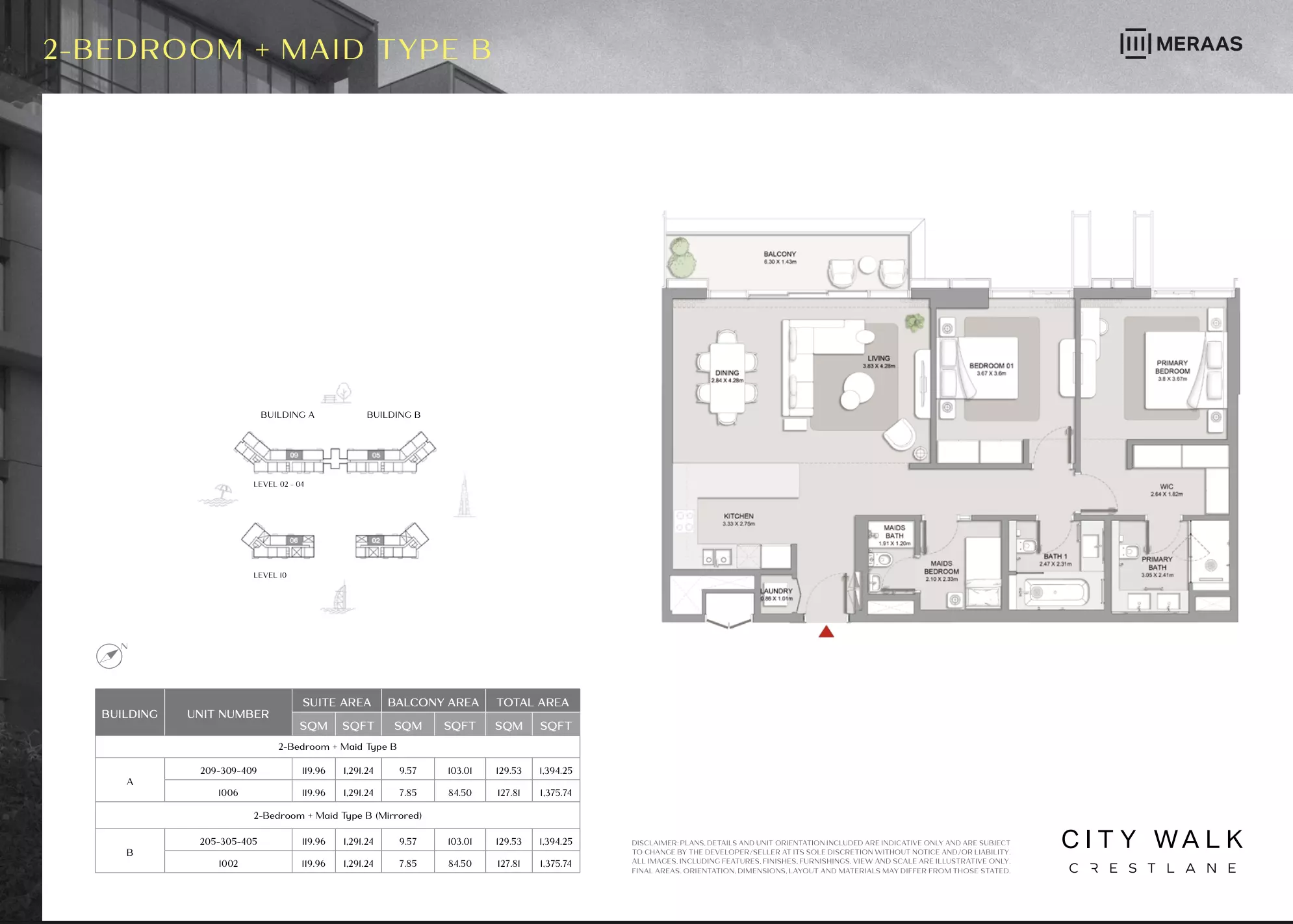 | Type B Mirrored + Maid - 2 BR | 1,394.00 | View |