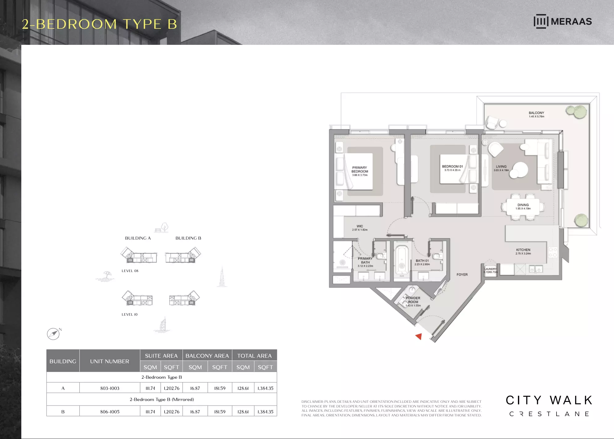 | Type B Mirrored - 3 BR | 2,108.00 | View |