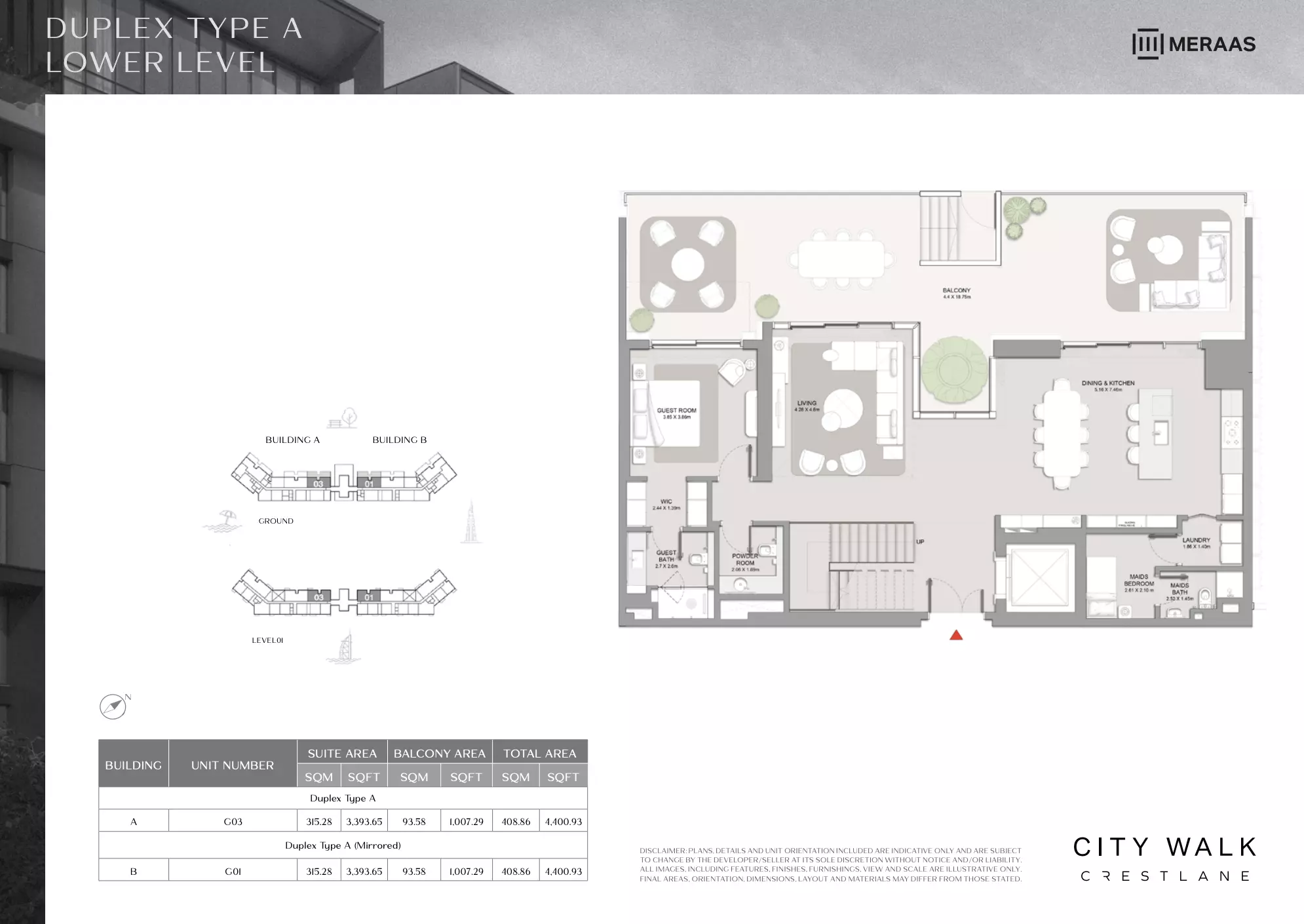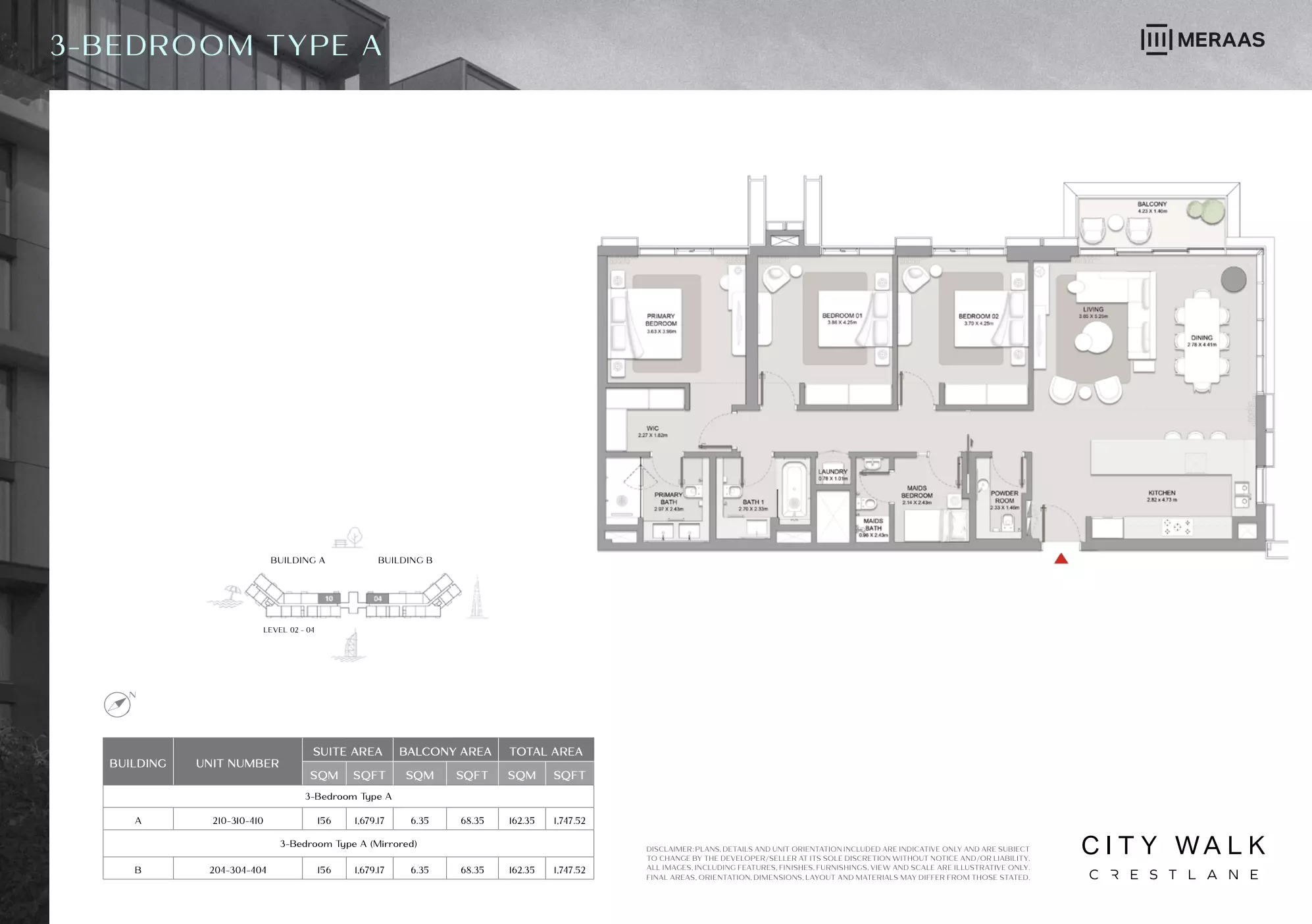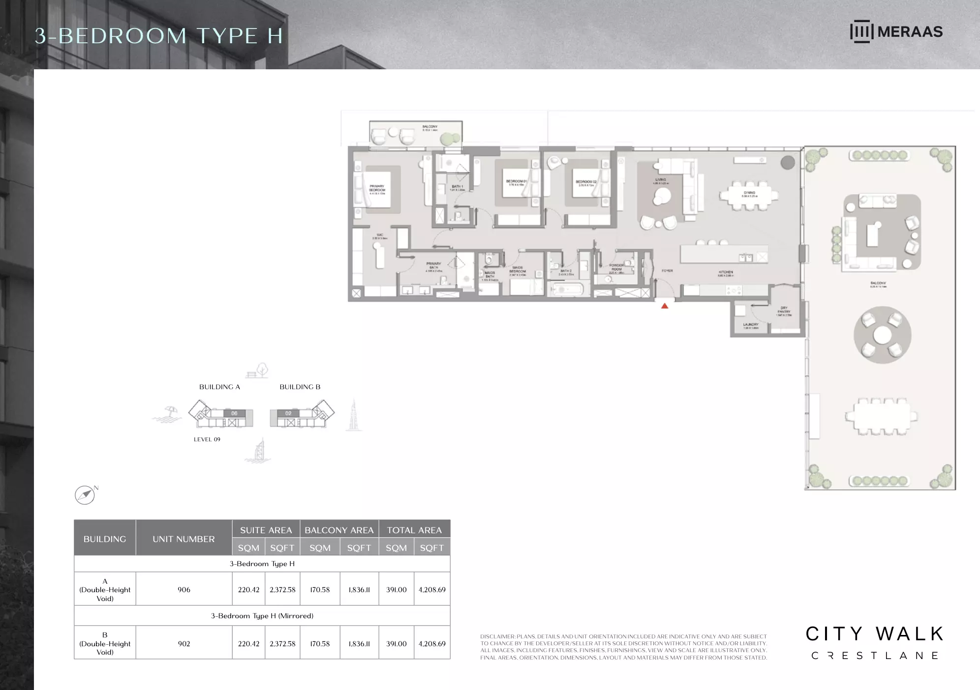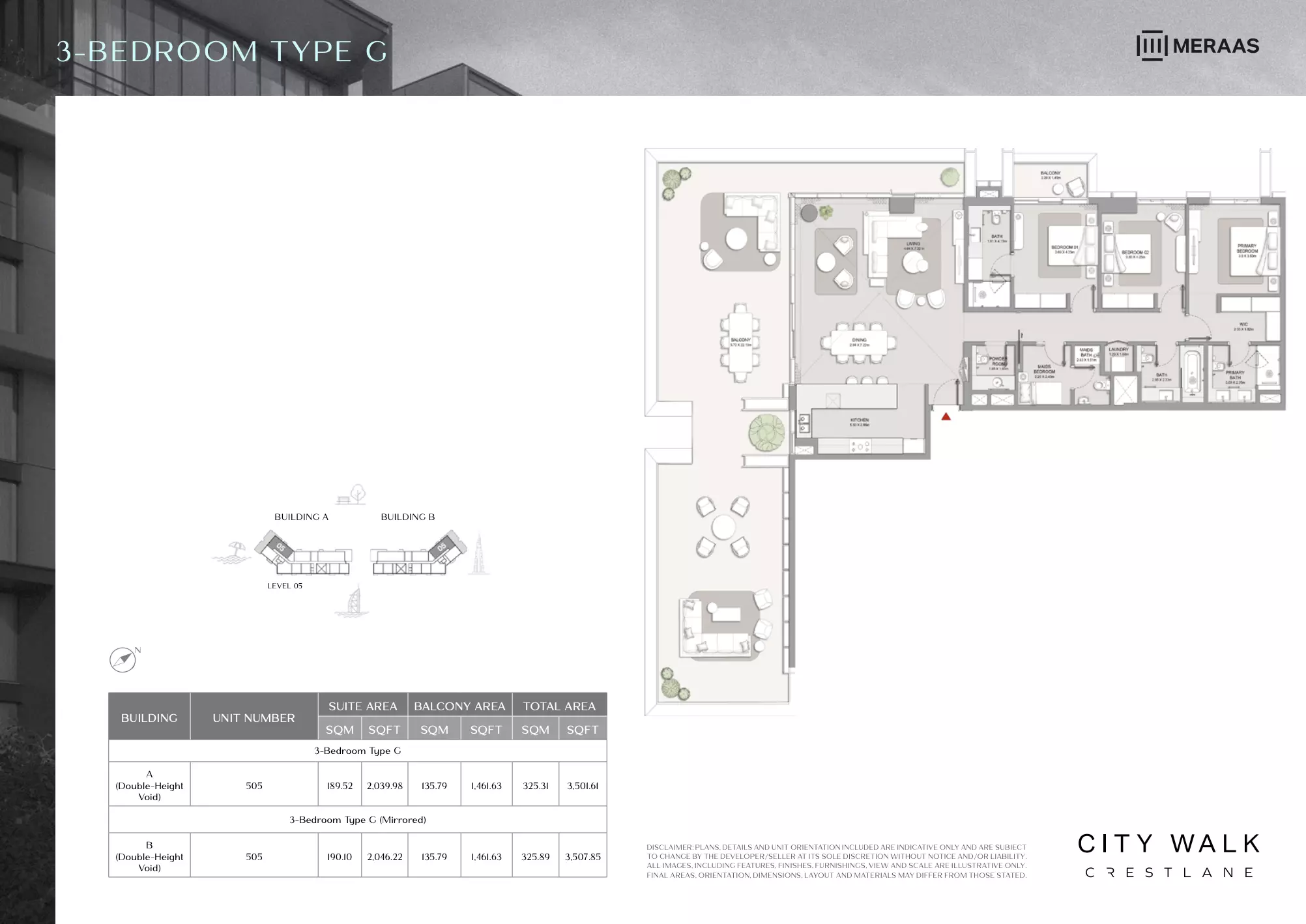| Type G Mirrored - 3 BR | 3,507.00 | View |