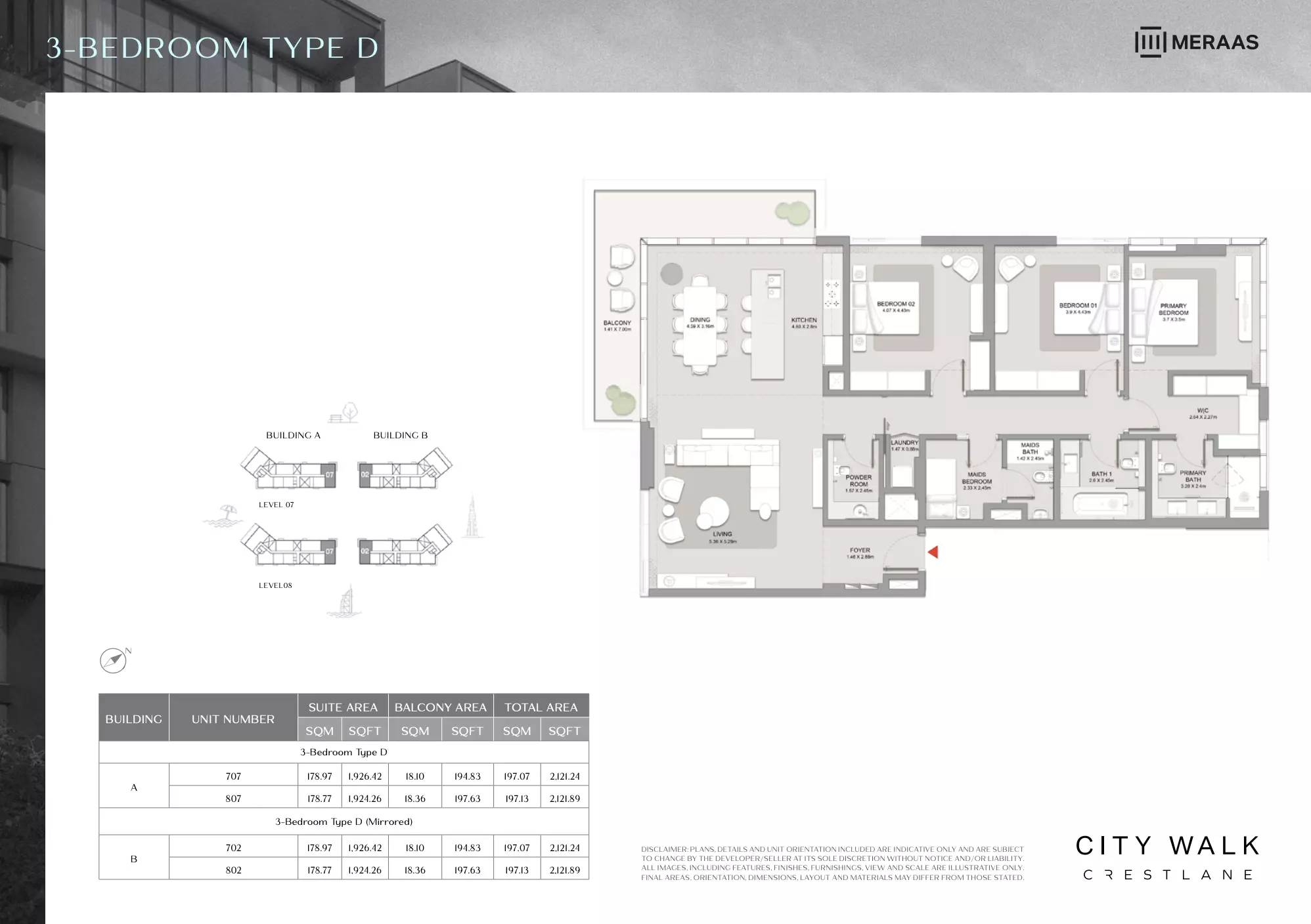 | Type D Mirrored - 3 BR | 2,121.00 | View |