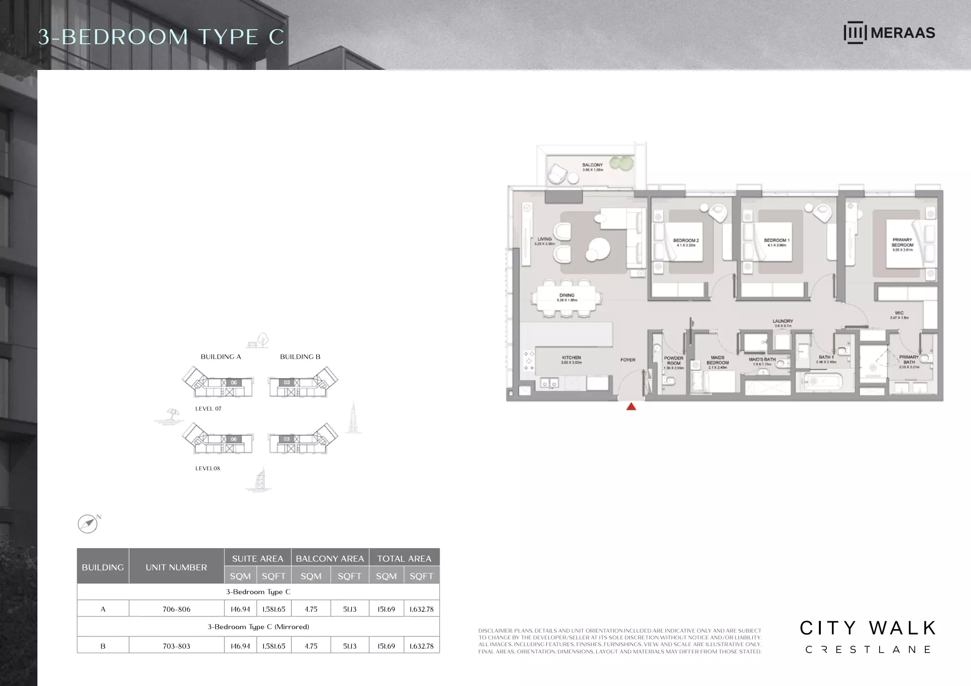 | Type C Mirrored - 3 BR | 1,632.00 | View |