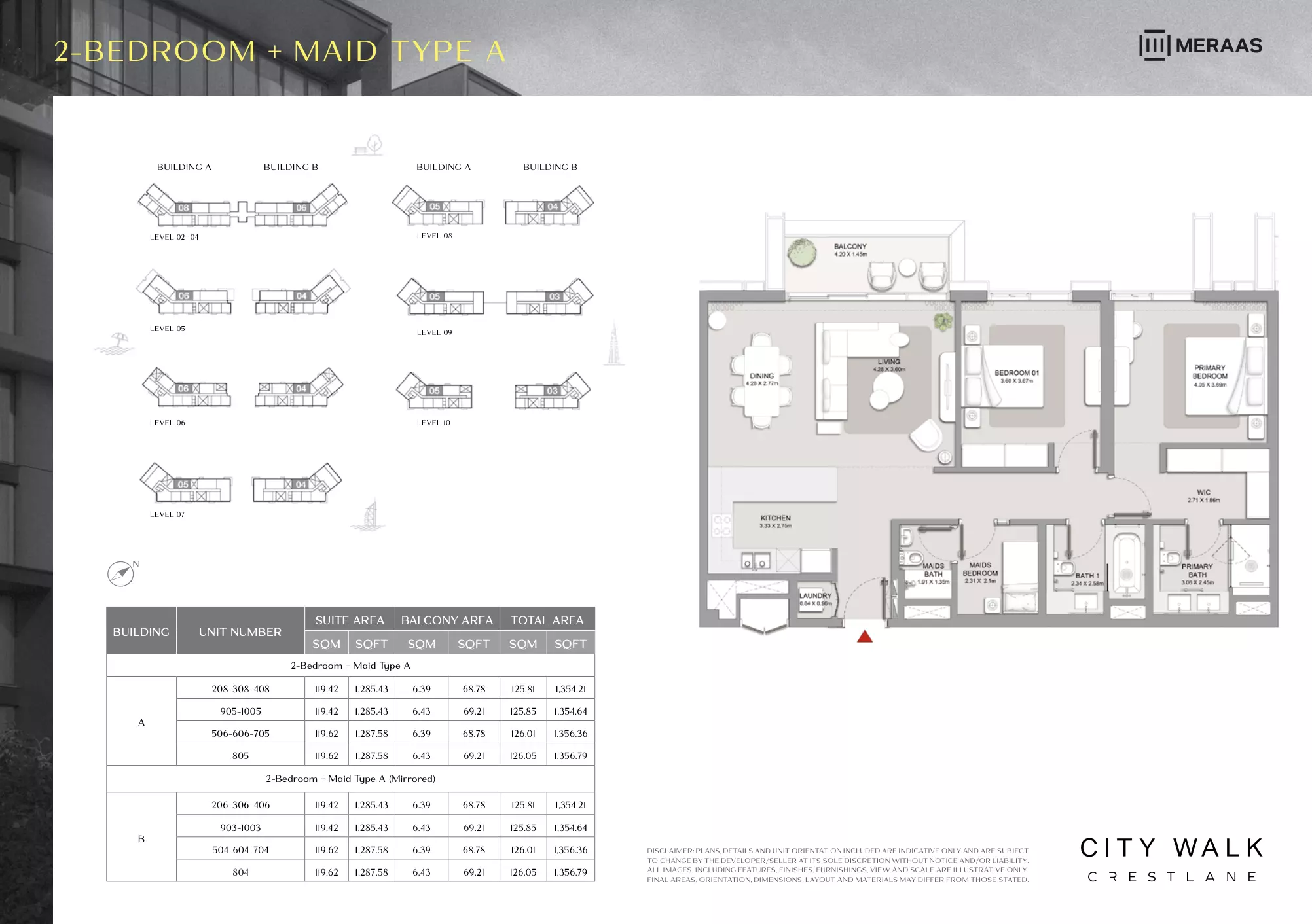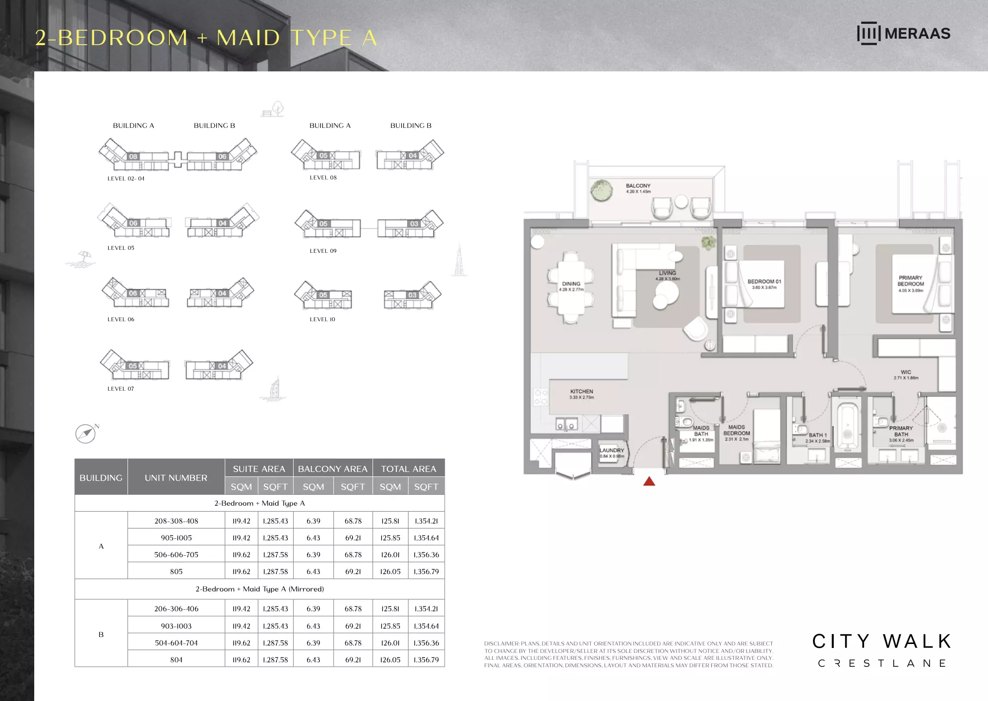 | Type A + Maid - 2 BR | 1,354.00 | View |